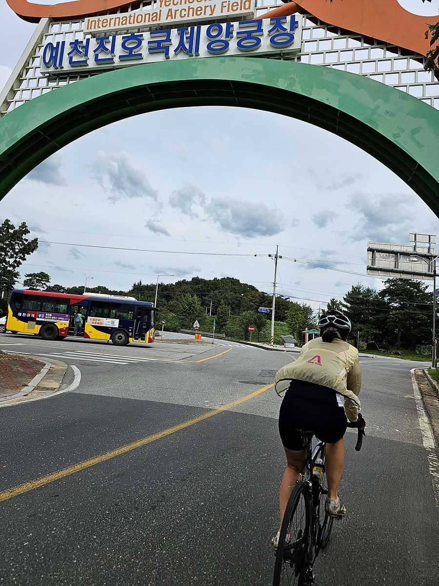 예천 남쪽의 국제 양궁장이 출발지점으로 아주 좋길래 주차하고 출발한다. 하필이면 태권도 승단 시험이 있는 날인지 그 근처 태권도장 차량들과 아이들 그리고 부모들 차량으로 북새통이다.