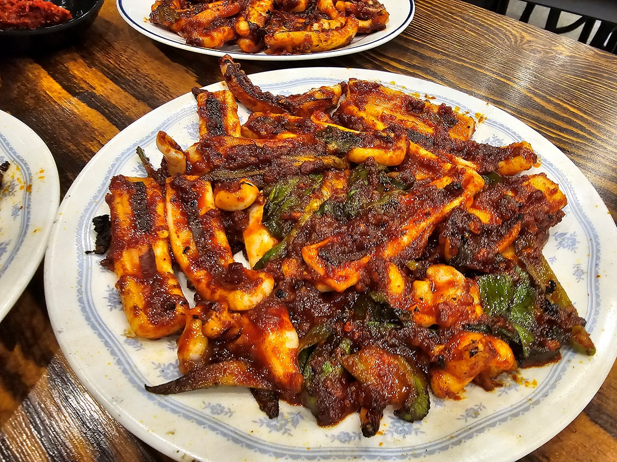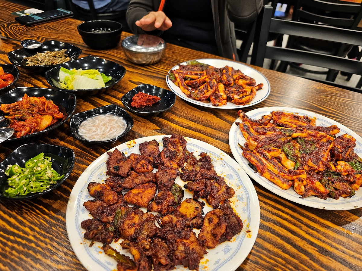 오전에 그렇게 시끄럽던 양궁장은 행사가 끝났는지 쥐 죽은 듯이 조용하다. 주차해 둔 차에 자전거를 싣고 저녁을 먹으러 간다. 예천에 가면 먹을만한 것으로 구워 나오는 오징어 불고기가 있다. 열심히 달렸으니 오징어 불고기 두 판과 돼지 불고기 한 판으로 넉넉하게 저녁을 먹는다.