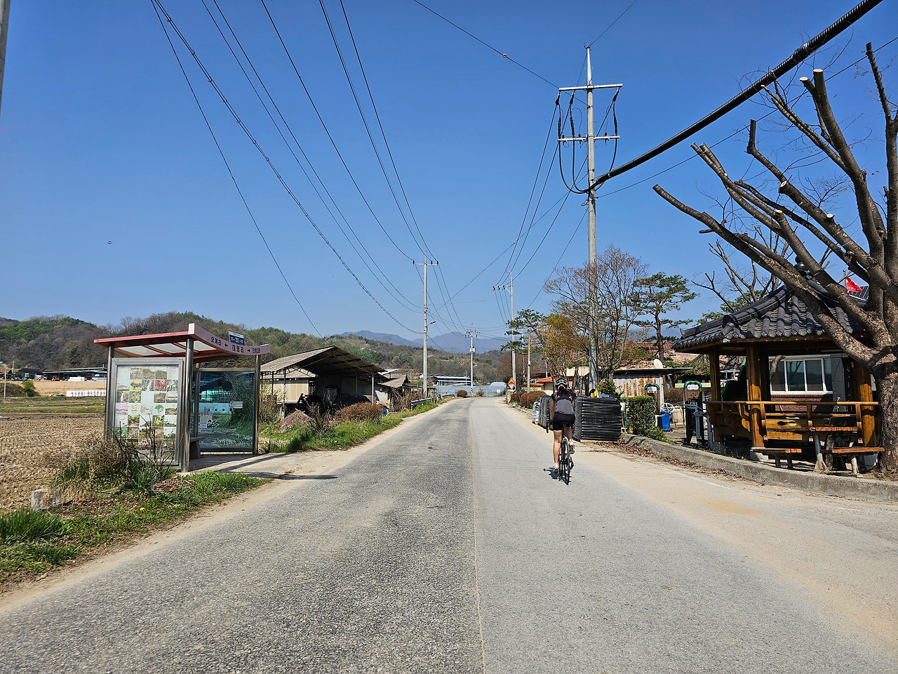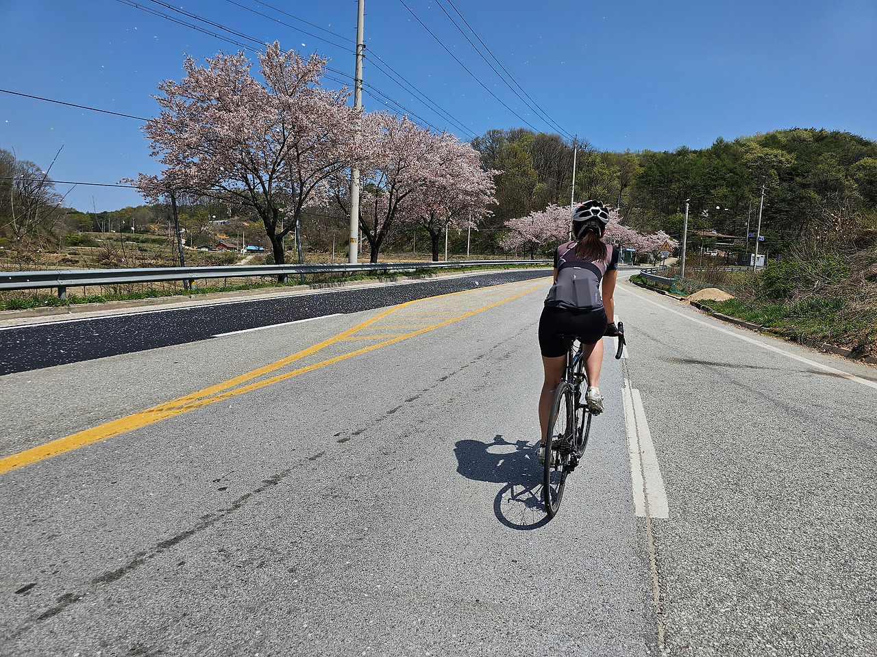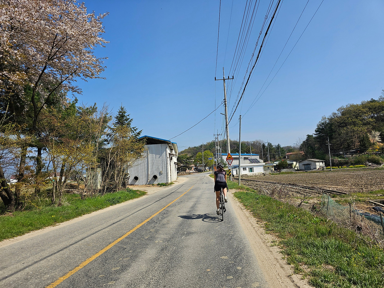 산이 많은 곳이다 보니 길이 많지 않다. 이제 당분간은 작은 개천인 석관천과 931번 도로만 따라가면 된다. 큰 오르막길도 없고 갈림길도 없는 편안한 도로다. 다 저물어가지만 벚꽃도 자주 보인다. 며칠만 늦게 피었어도...