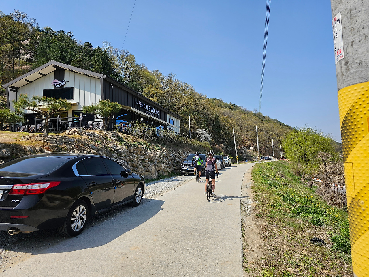지도 앱으로 보면 서천 우안 쪽은 길이 끊겨 보이는데 서천 자전거길은 계속 이어진다. 월호리 입구 삼거리에서 자전거길은 일단 끝나지만 주말에는 한적한 공단 도로가 계속 이어지니 자전거 타는데 아주 좋은 길이다.