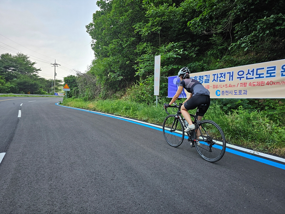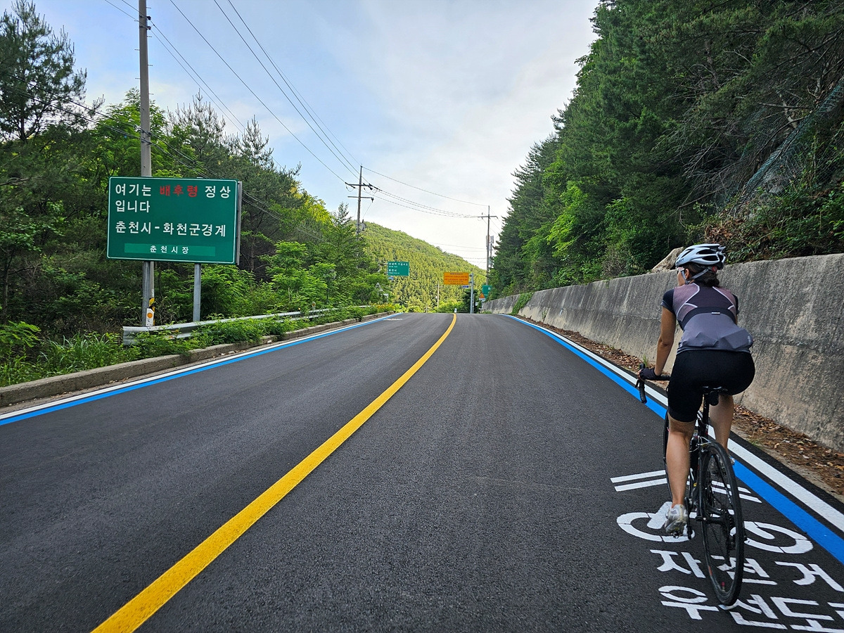 딱 춘천시 경계까지만 자전거 우선도로가 완공되었다는 것이다. 화천 쪽은 여전히 낡은 포장도로다.
