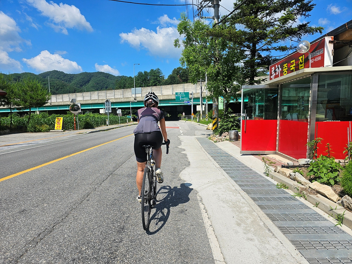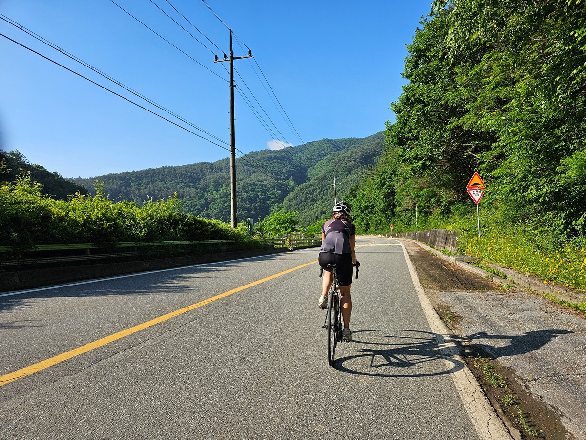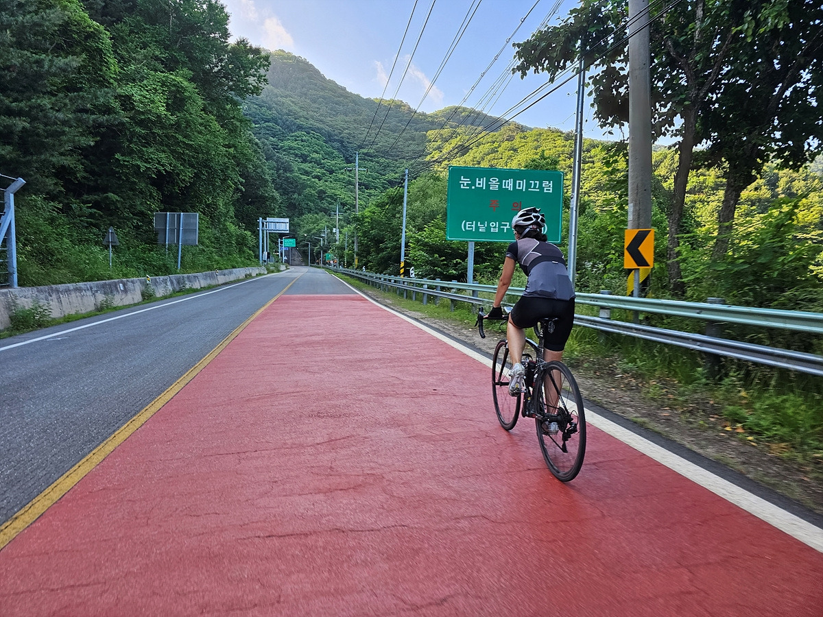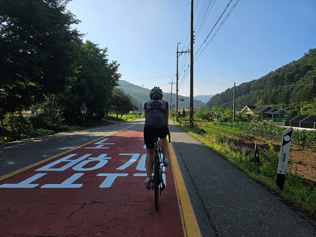 왼쪽엔 중앙고속도로, 오른쪽엔 자전거길이 있는데 차량 통행이 적은 길이라 도로로 달린다. 자전거길은 금방 끝나는 데다가 자갈이나 모래가 많다.