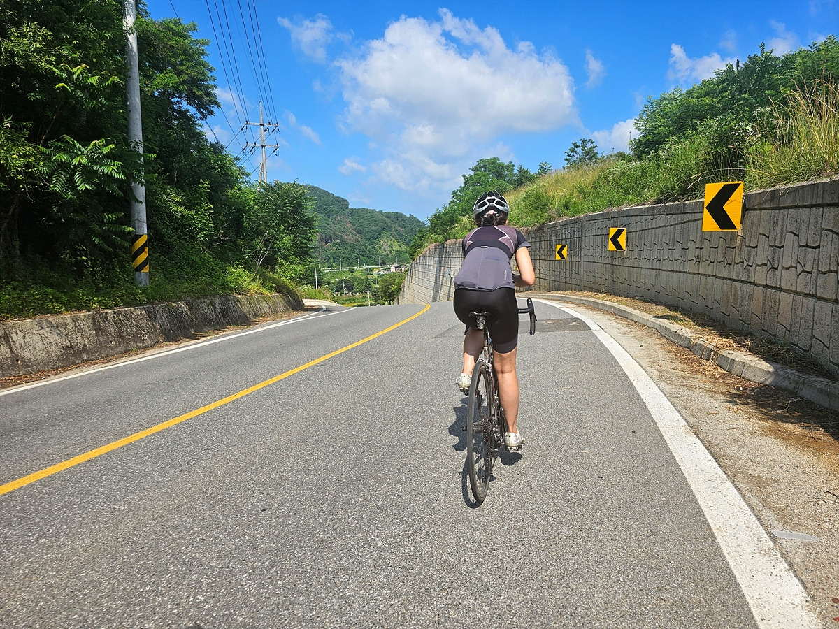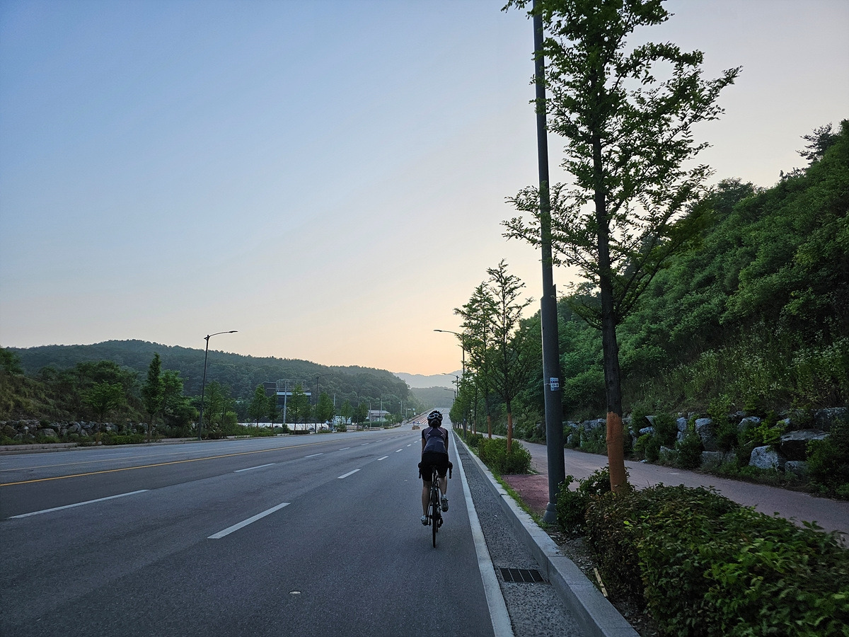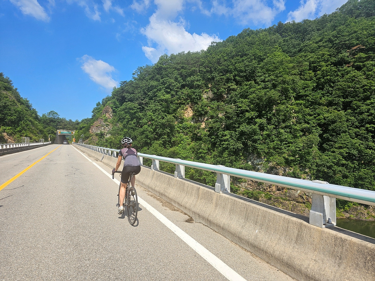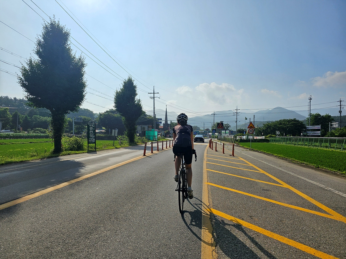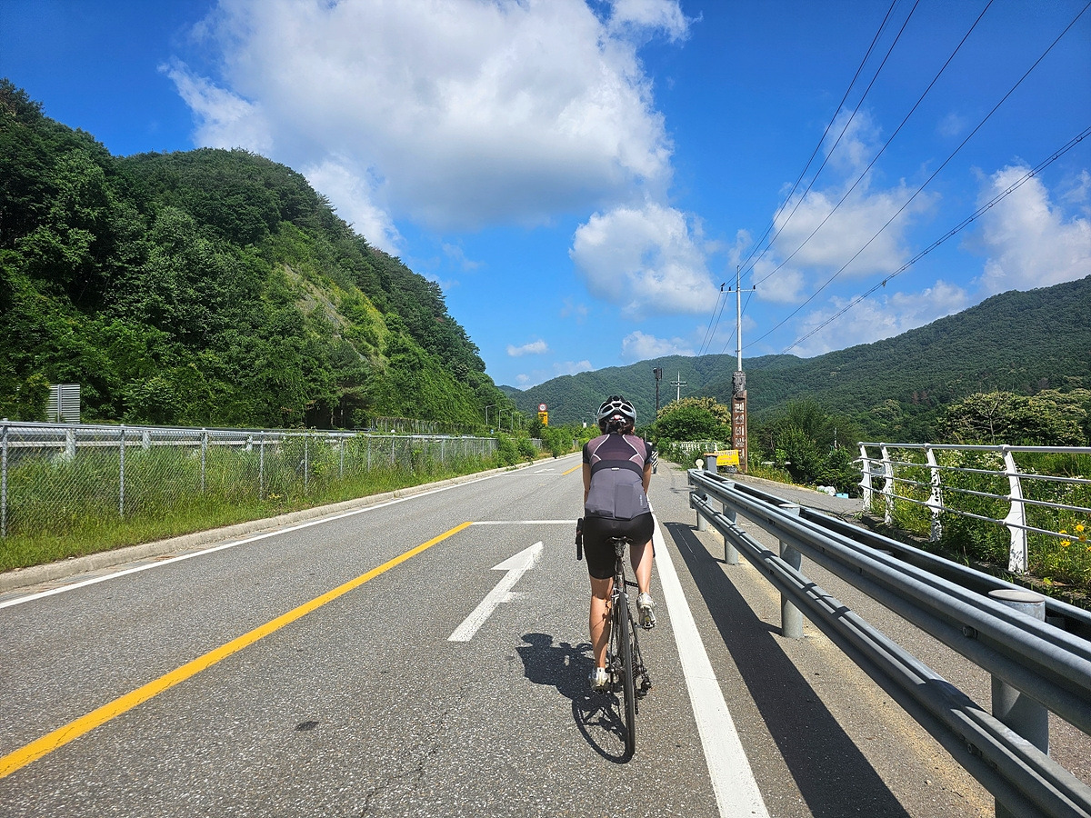 왼쪽엔 중앙고속도로, 오른쪽엔 자전거길이 있는데 차량 통행이 적은 길이라 도로로 달린다. 자전거길은 금방 끝나는 데다가 자갈이나 모래가 많다.