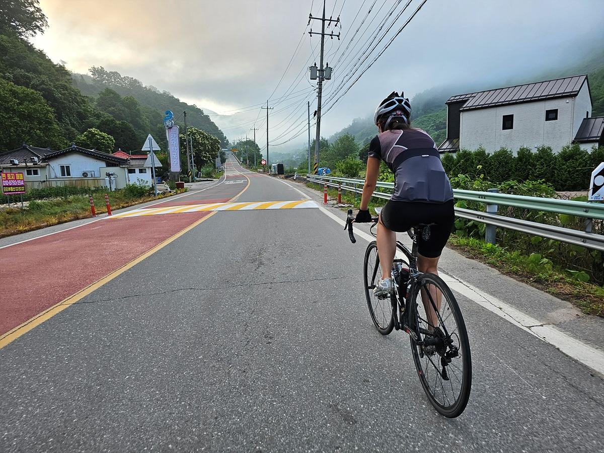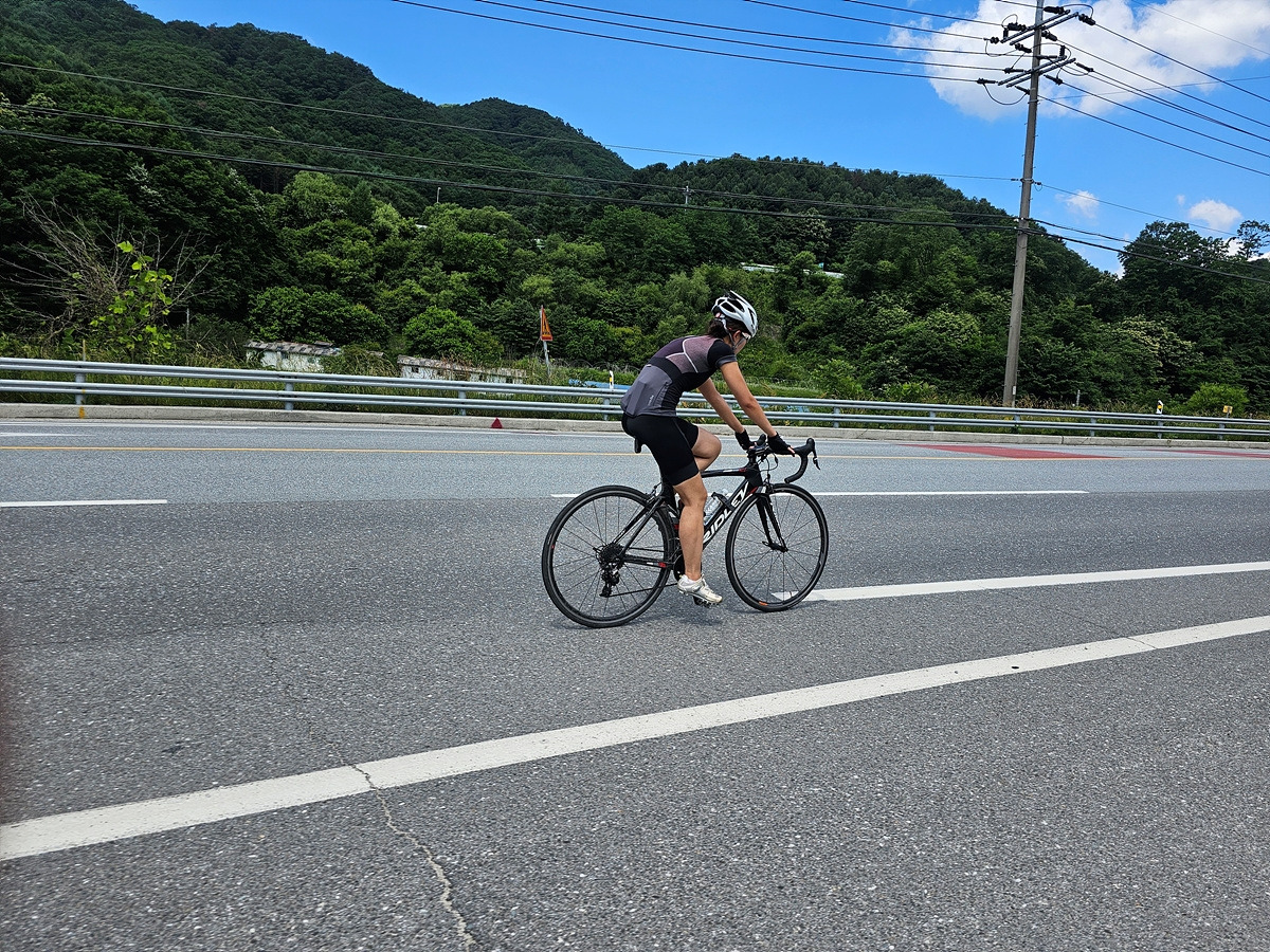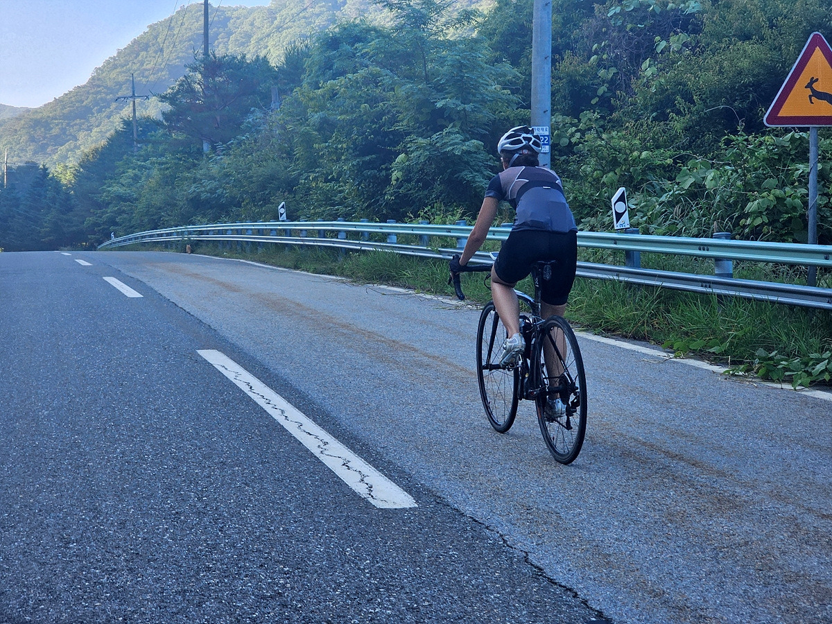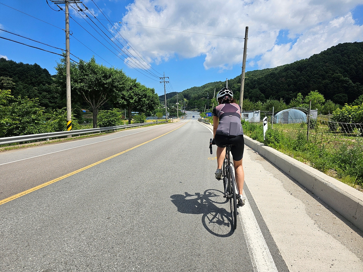 왼쪽엔 중앙고속도로, 오른쪽엔 자전거길이 있는데 차량 통행이 적은 길이라 도로로 달린다. 자전거길은 금방 끝나는 데다가 자갈이나 모래가 많다.