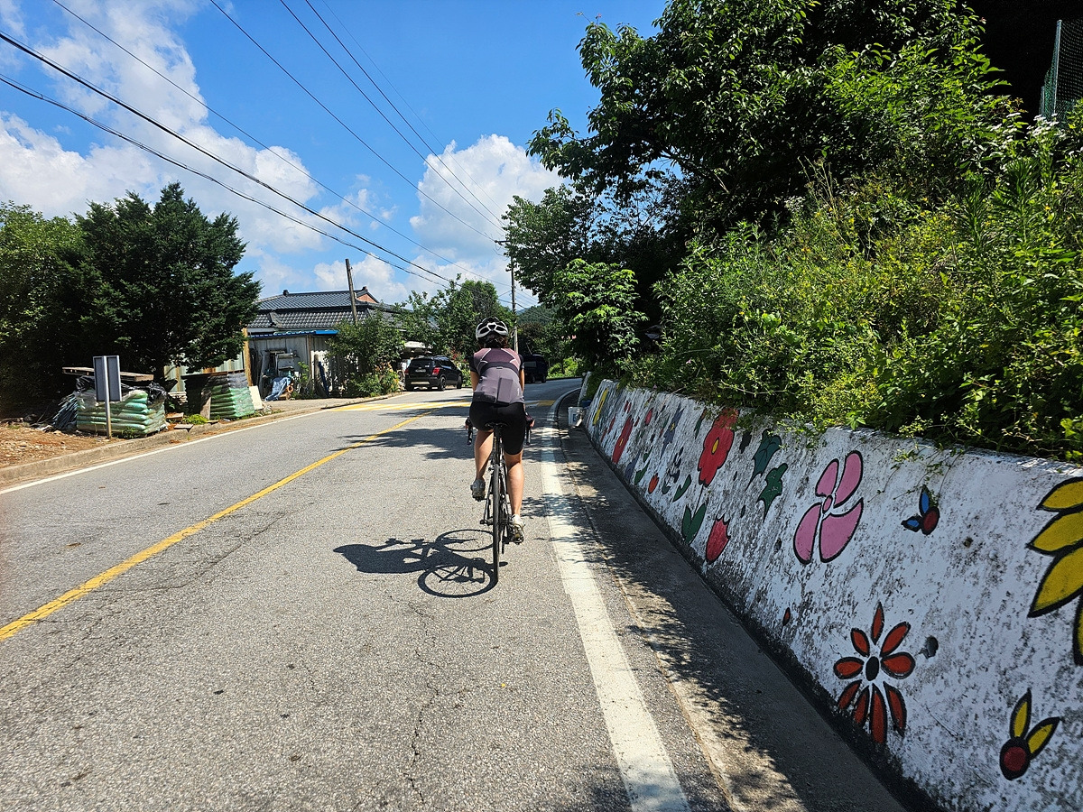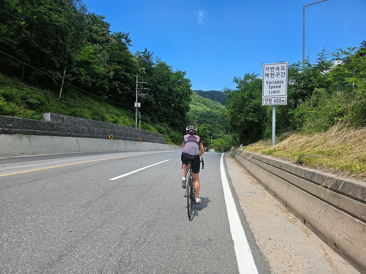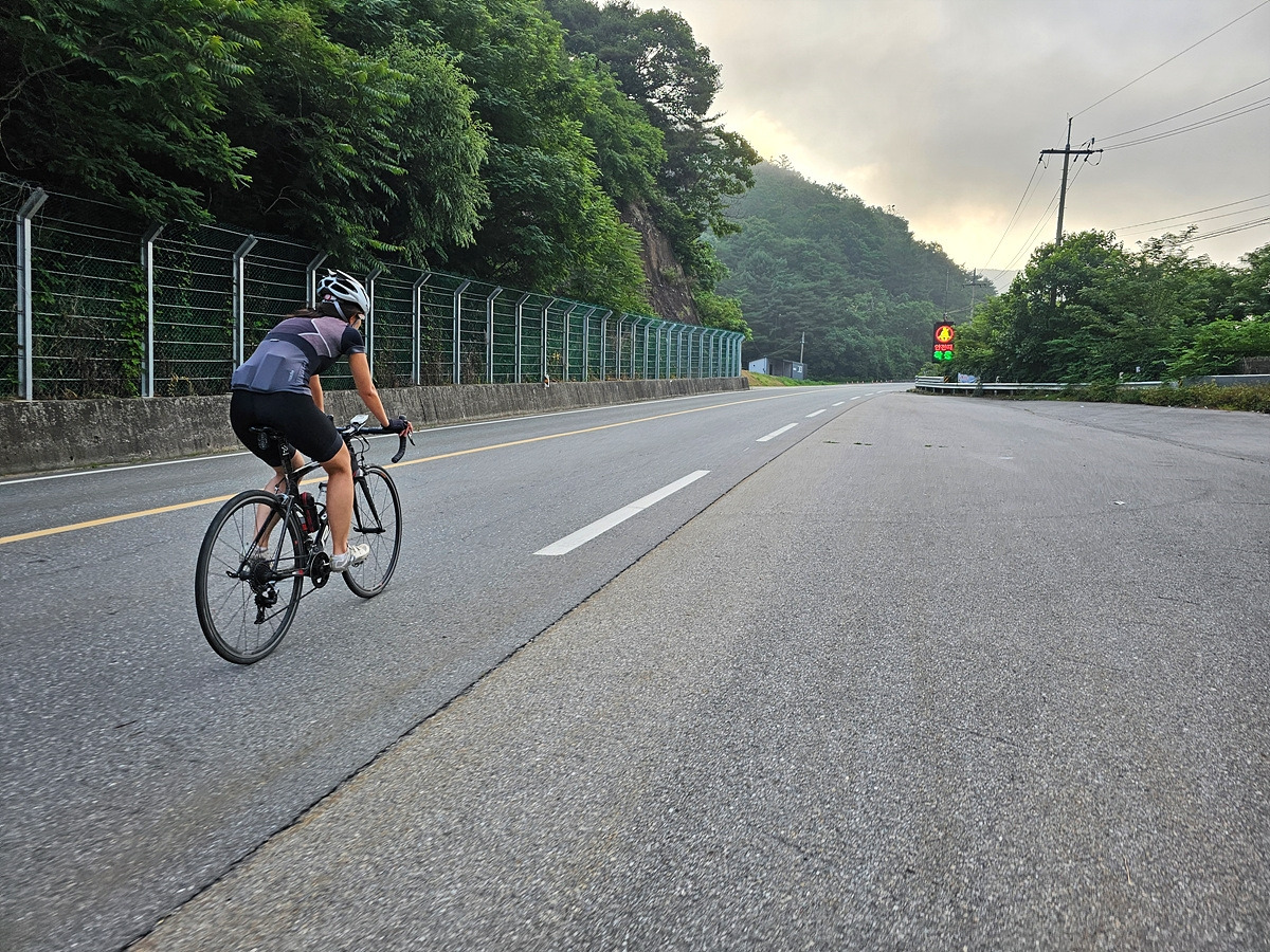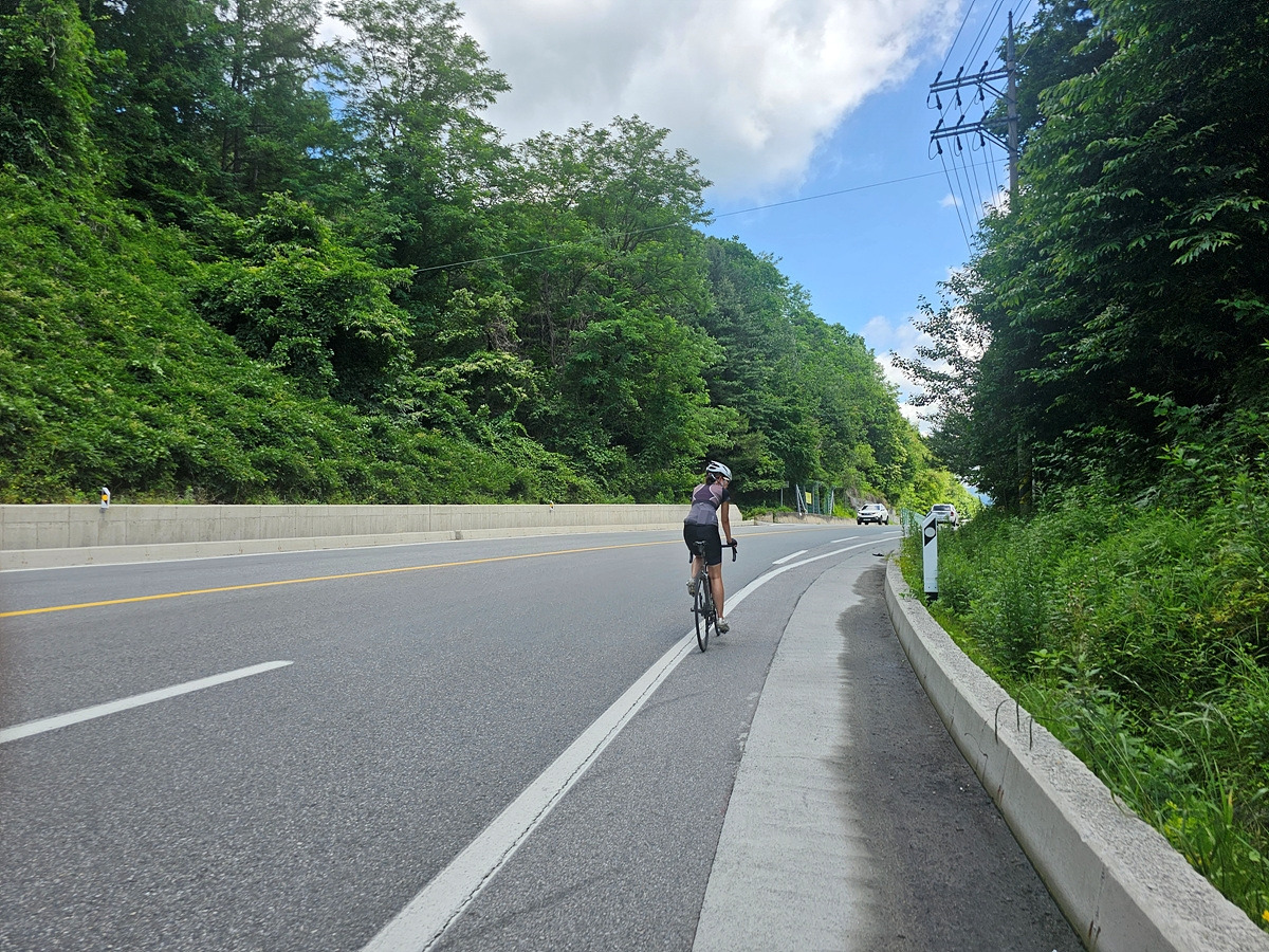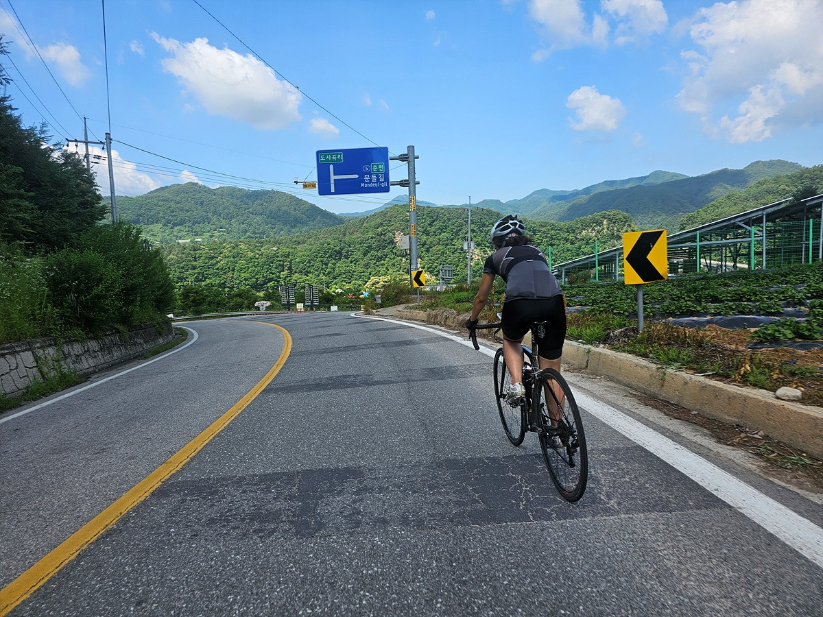 왼쪽엔 중앙고속도로, 오른쪽엔 자전거길이 있는데 차량 통행이 적은 길이라 도로로 달린다. 자전거길은 금방 끝나는 데다가 자갈이나 모래가 많다.