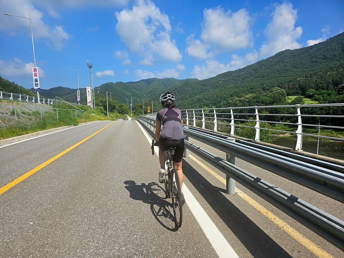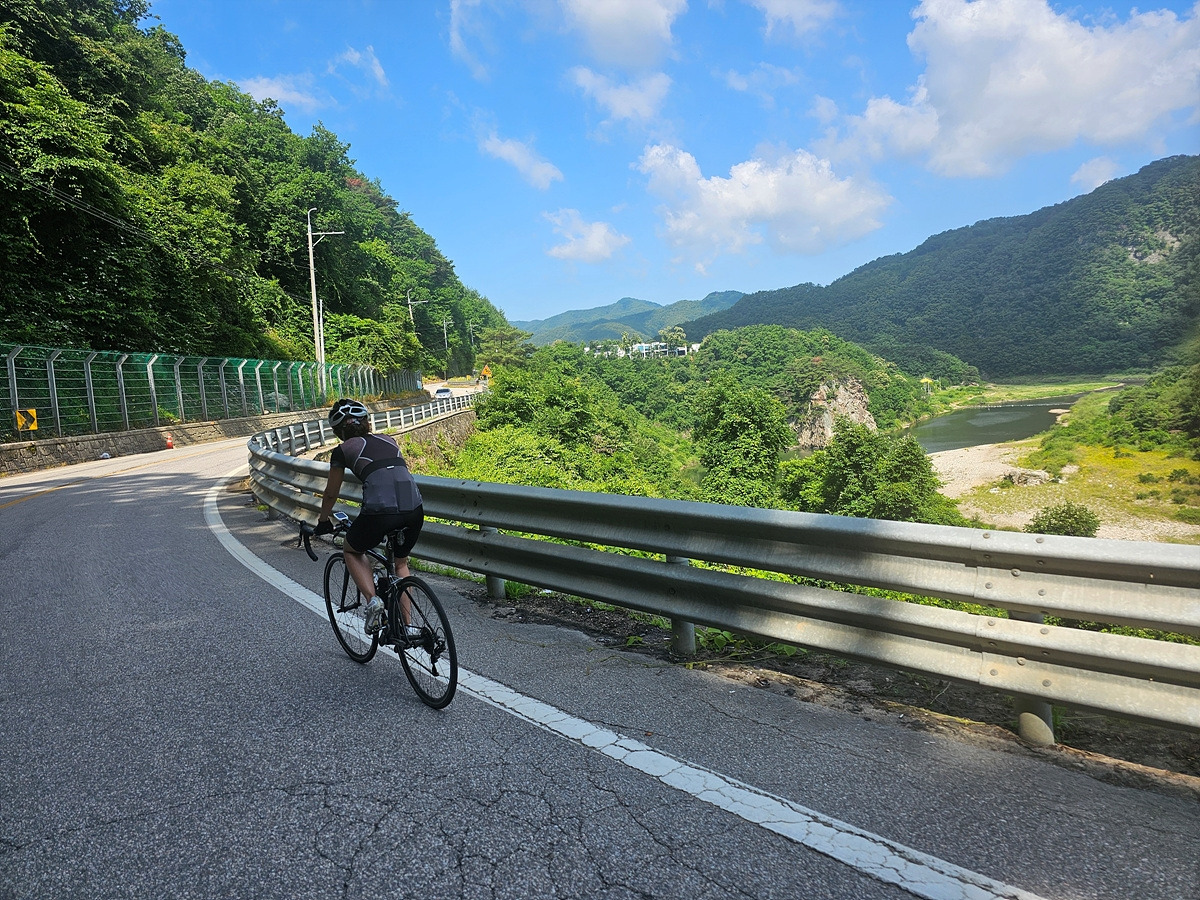 군부대 앞을 지나 약한 언덕을 하나 넘으면 홍천강과 만난다. 소매곡교 다리를 건너자마자 우회전하면 홍천강변의 비포장길이 이어지니 우리 같은 로드바이크는 그다음 도로로 중앙고속도로 옆길로 가야 한다.