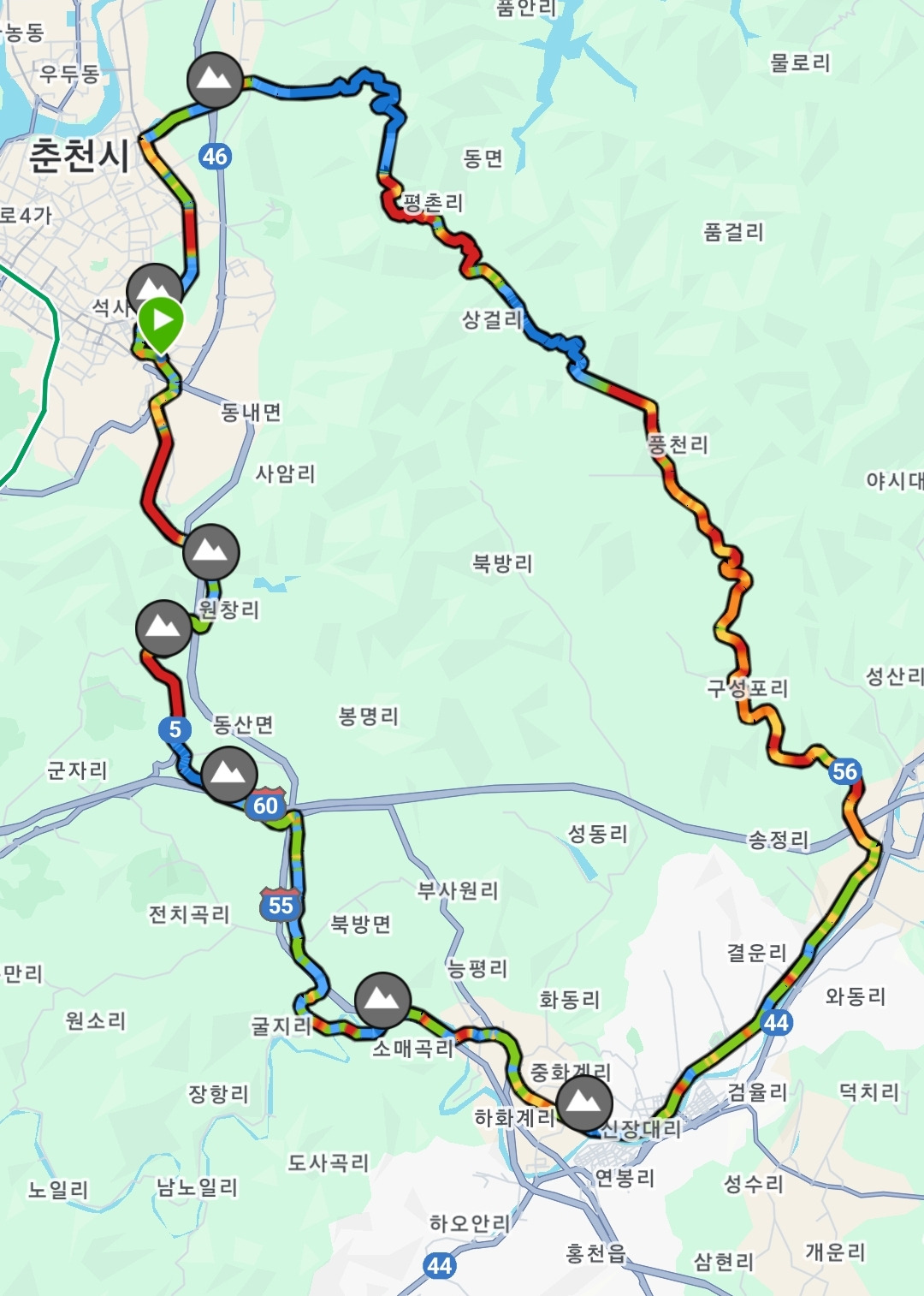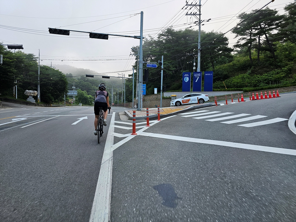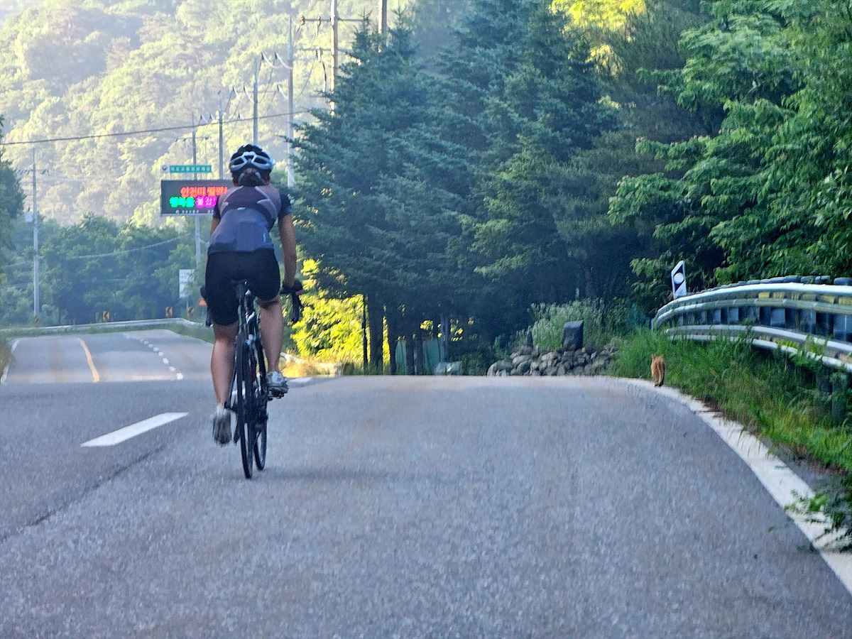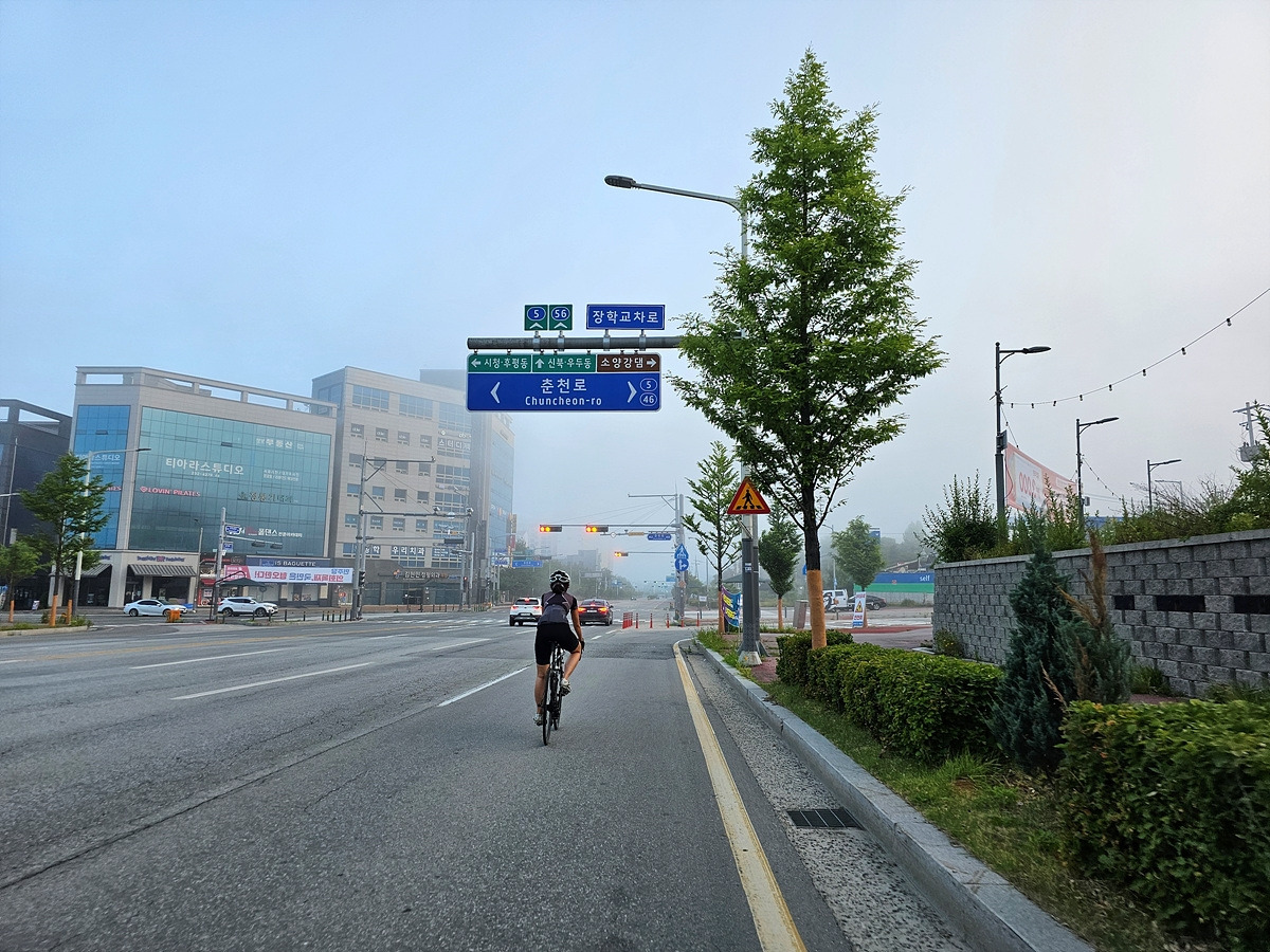 모래재를 넘으면 국립춘천병원을 지나 쭉 내려간다. 교통량이 조금 늘어나지만 길이 깨끗하고 차선이 넓은 편이라 그나마 달리기 나쁘지 않다.