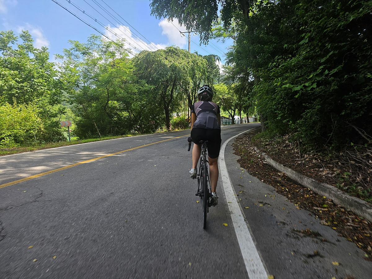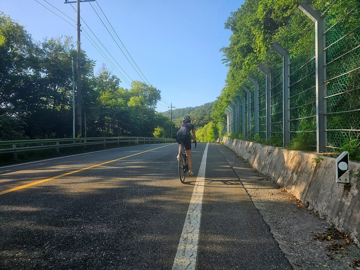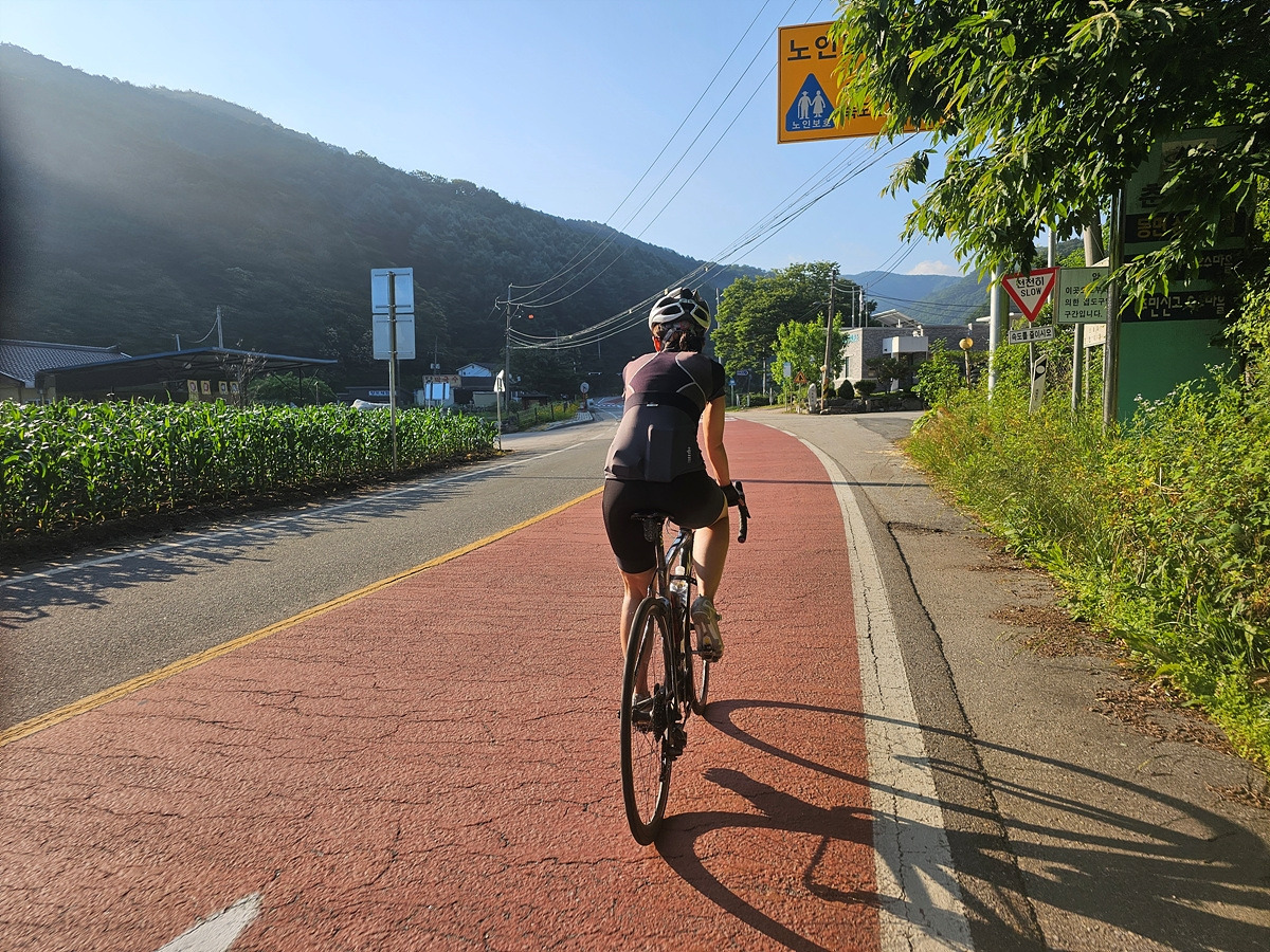 슬슬 더워지는 시간에 딱 그늘 방향으로 자전거를 탄다. 이런 그늘 방향도 모두 계획된 것이다.