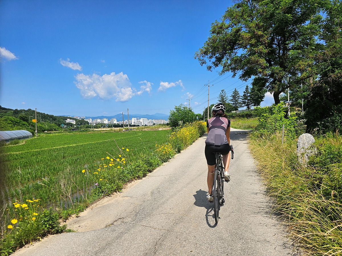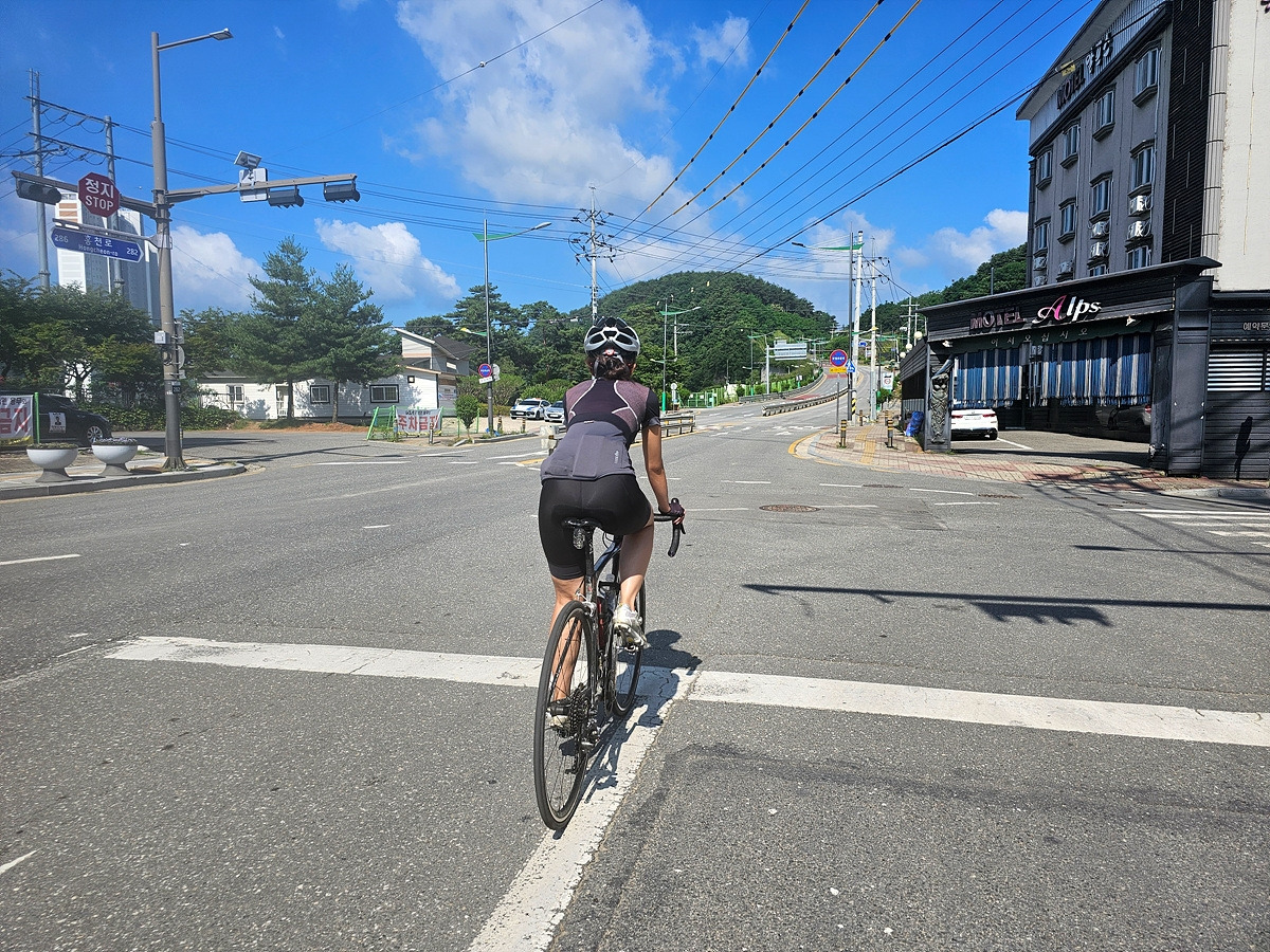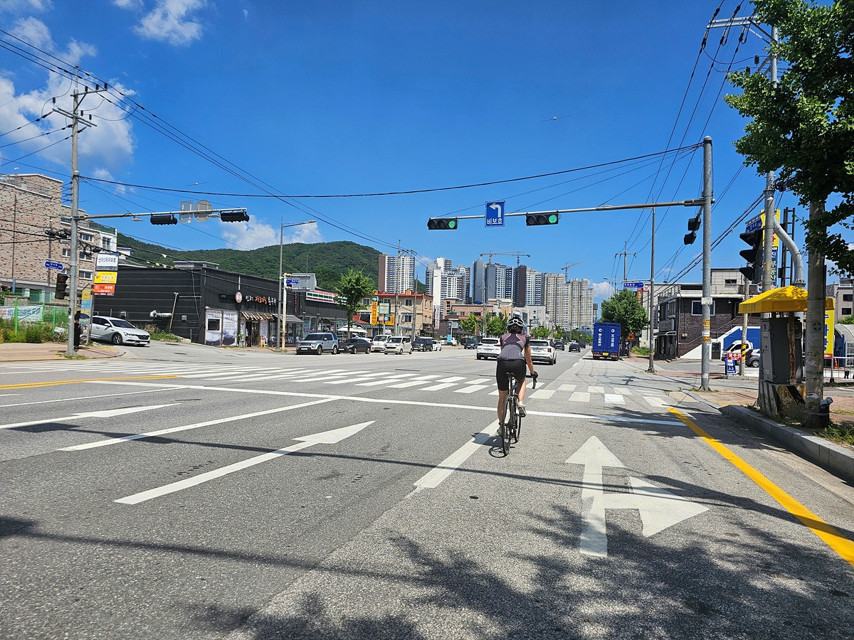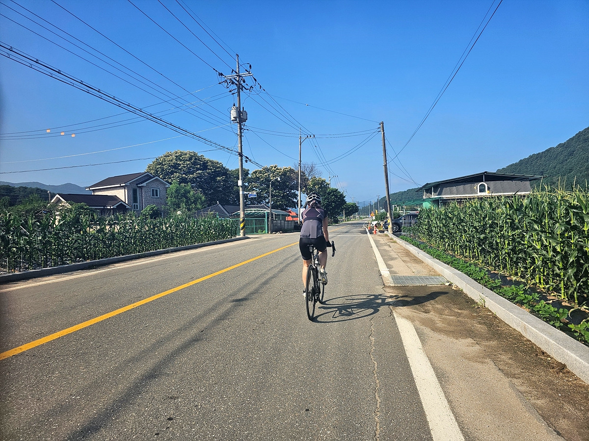 슬슬 더워지는 시간에 딱 그늘 방향으로 자전거를 탄다. 이런 그늘 방향도 모두 계획된 것이다.