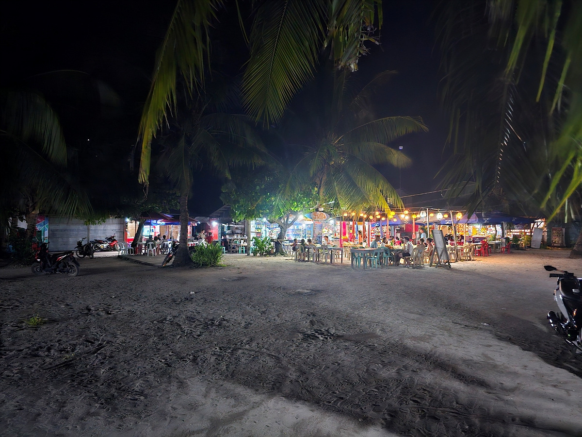 야간 다이빙까지 끝나니 저녁 7시가 넘었다. 부지런히 정리하고 오늘 저녁은 섬 안쪽에 있는 필리핀 현지식 식당에서 먹는다. 벽도 없는 건물의 조금 허름한 식당에서 적당히 맛있는 해산물로 식사를 한다.