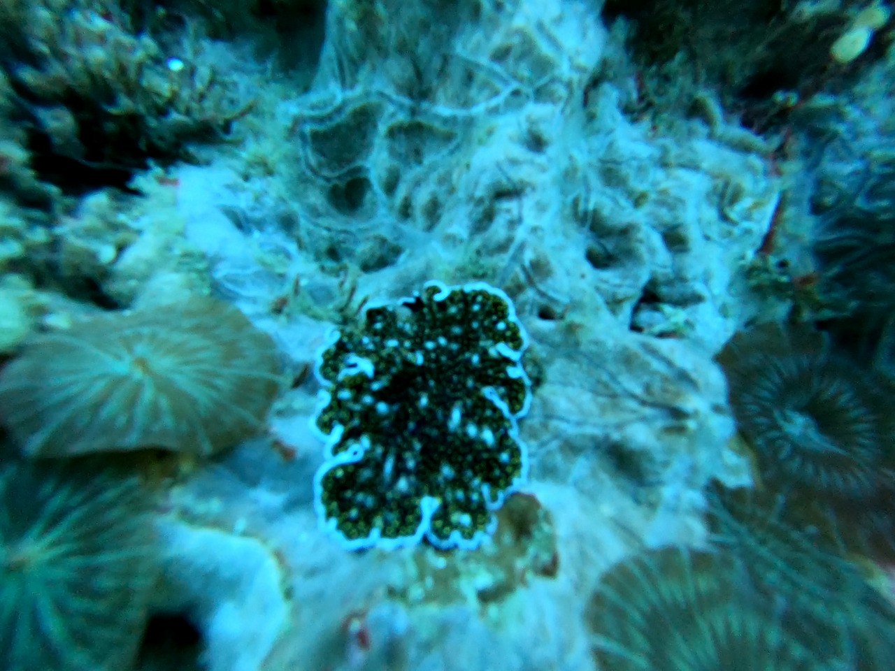 독특한 검은색 누디도 보인다. 아주 작은 녀석도 아닌데 고프로의 한계로 흐리멍덩하다.