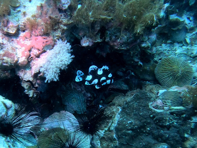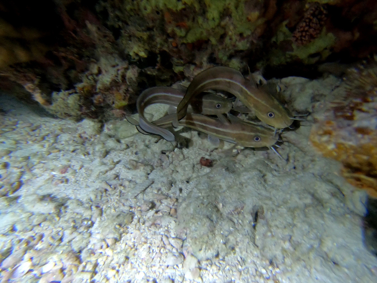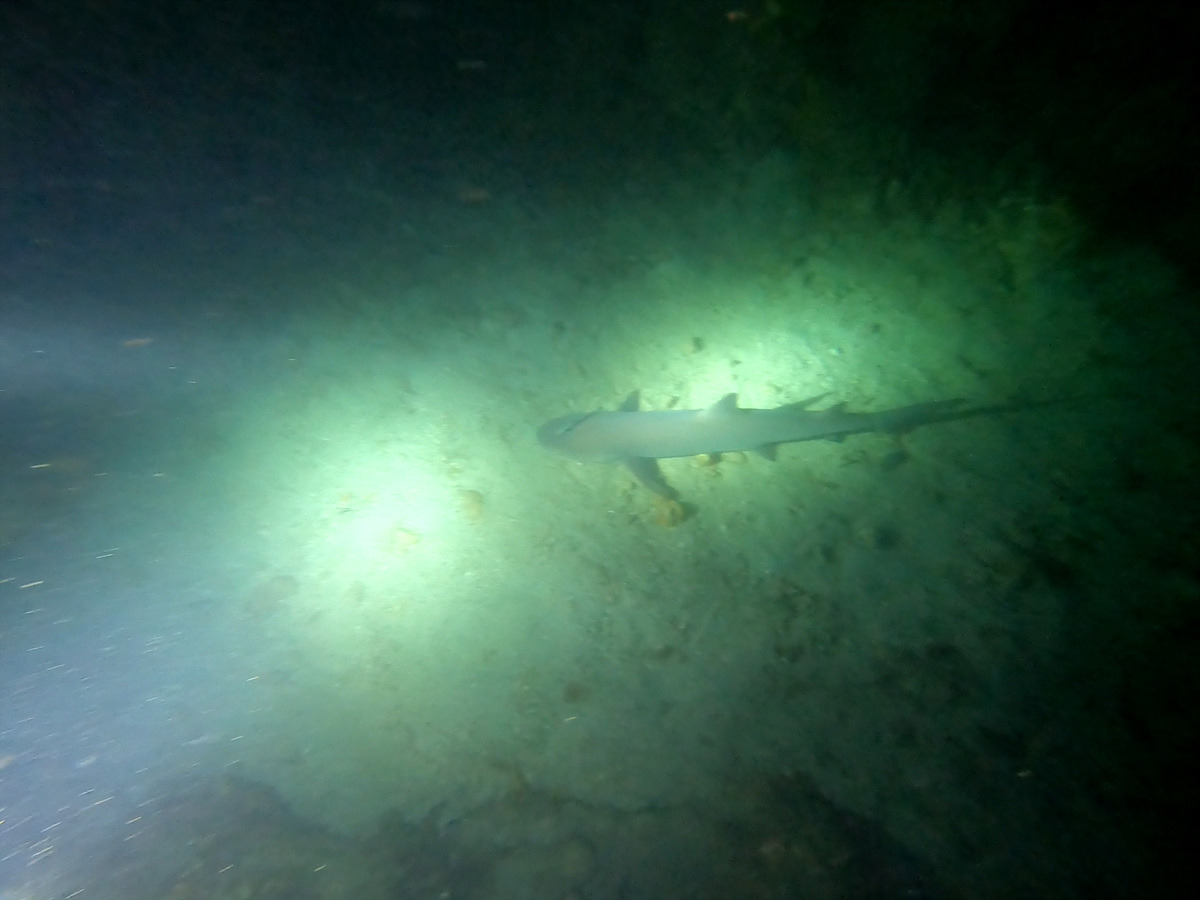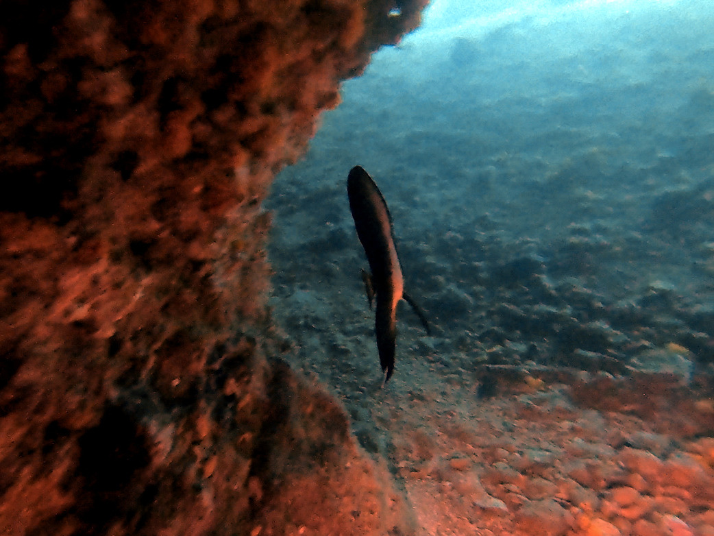 이 동굴 안에는 작은 화이트팁 샤크가 산다. 상어라고 하지만 공격성이 없는 순한 녀석이라 랜턴을 들고 몰려드는 다이버들을 보고 도망간다.