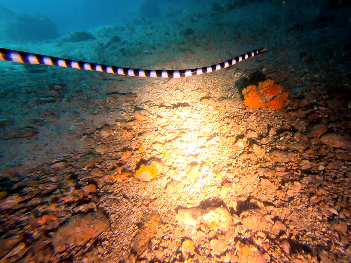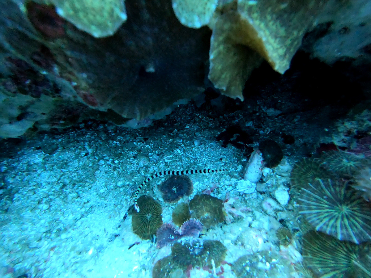 나가는 길에 바다뱀과 마주친다. 공격성이 낮다는 걸 알지만 바로 앞에서 마주치면 놀랄만하다.