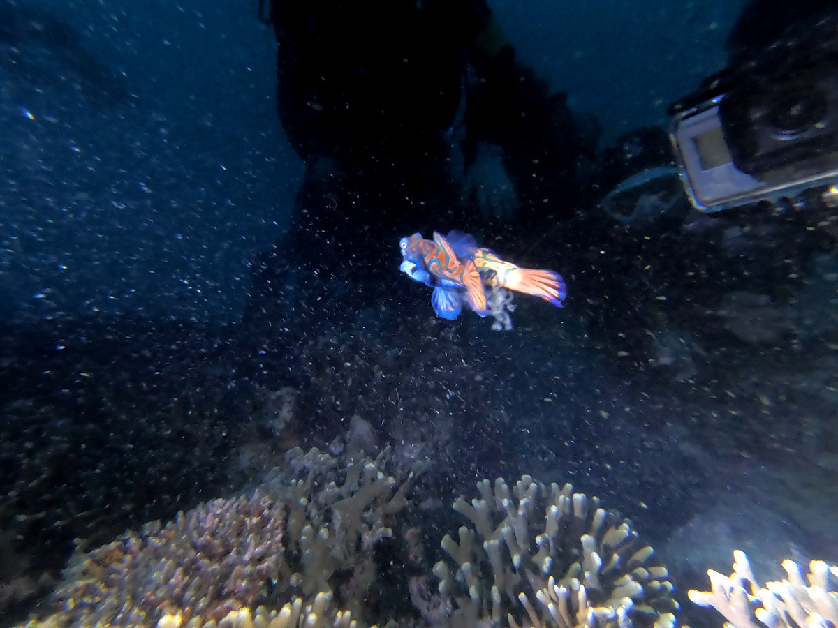 말라파스쿠아 앞바다에는 만다린 피쉬가 산다. 해 질 녘에는 두 마리의 만다린피쉬가 수차례 짝짓기를 하는데 말라파스쿠아의 야간다이빙은 이 녀석들을 보는 것으로 시작한다. 원래 한 팀당 만다린 피쉬 한 커플 씩 찾아서 봐야 하는데 오늘따라 만다린 피쉬가 안 보인다. 두 팀이 한 커플을 빙 둘러서 보니 북적북적하다.