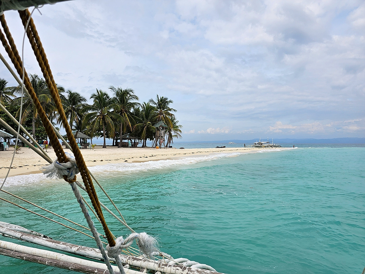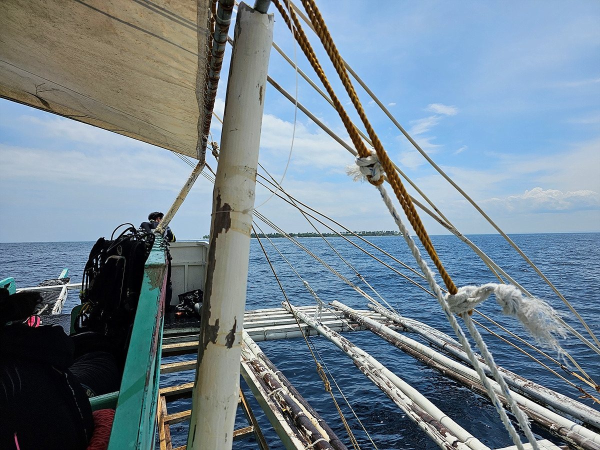우리는 환도상어가 보러 말라파스쿠아에 왔는데 다이빙샵에서는 단체 팀의 요구에 맞춰 꽤 먼 포인트를 여기저기를 다닌다. 오늘은 깔랑까만섬이다. 말라파스쿠아에서 남서쪽으로 20여 km 떨어진 곳이라 배로 2시간 정도 걸린다.