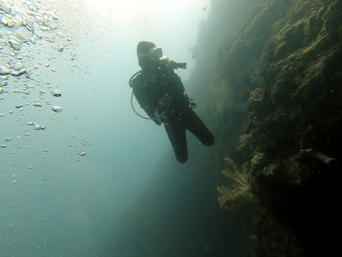 섬 바로 근처에서 입수해서 바로 월 지형을 따라서 이동한다.
