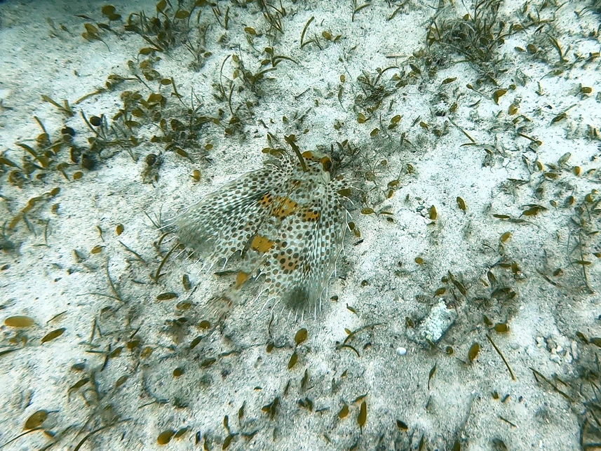 Flying gurnard (죽지성대) 처음 보는 녀석이었다. 나방같이 생겼는데 커다란 날개 같은 지느러미를 펼쳐 날아가듯이 헤엄친다. 영어 이름에 딱 맞는 녀석이다. 머리에 길쭉한 안테나 같은 지느러미도 있다. 그리고 글 마지막에 다시 등장한다.