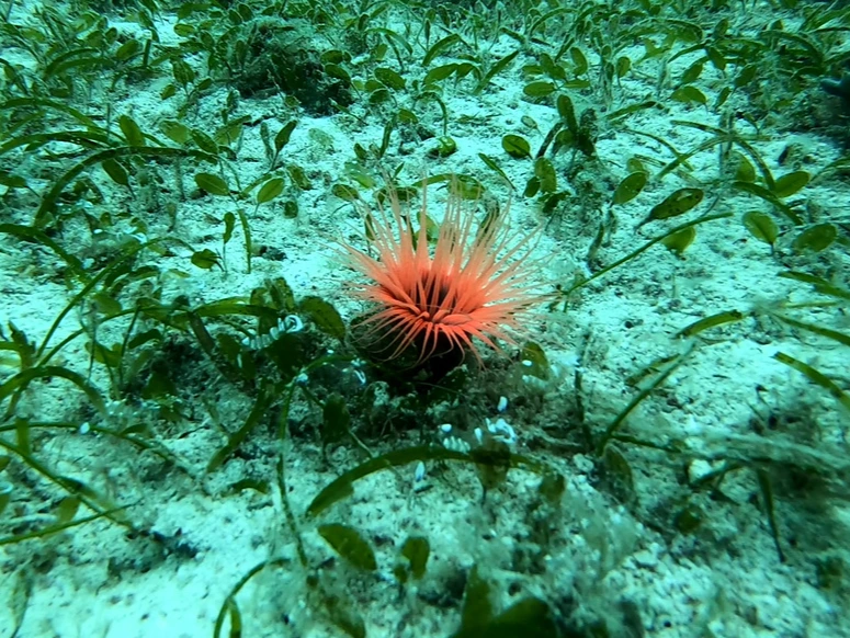 빨갛게 이쁜 튜브 아네모네가 보인다. 이름은 아네모네지만 말미잘 종류가 아니고 산호충류라고 한다. 그런데 이 사진의 주인공은 튜브 아네모네가 아니다.