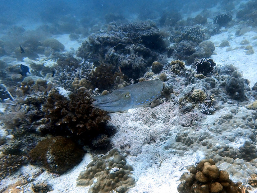 좀 큰 갑오징어가 가까이에 있다. 시시각각 색이 변하는 게 정말 신기한 녀석이다.