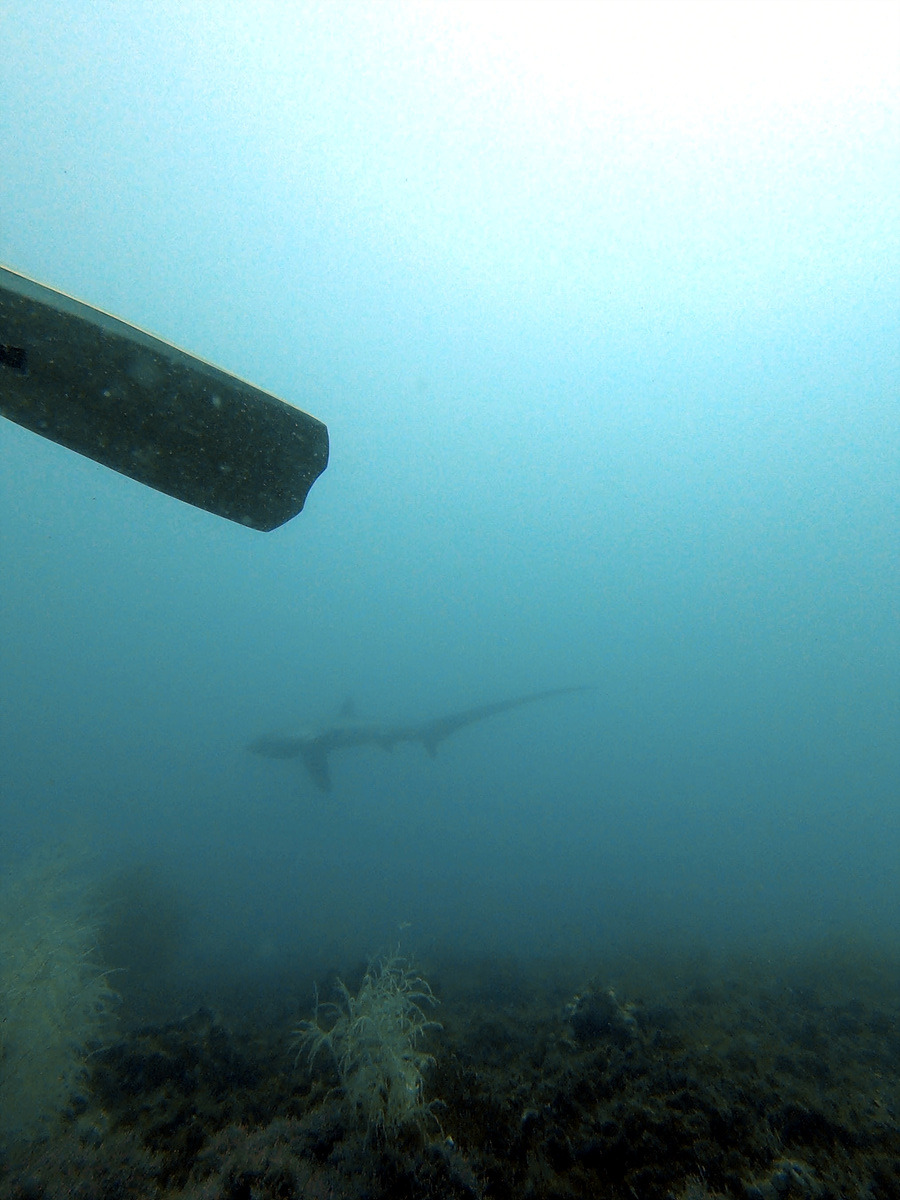 점점 시야는 안 좋아지는데 다행히 환도상어들은 가까이에 와준다. 다른 다이빙 후기들을 보면 엄청 가까이 다가오는 경우도 있던데 그렇게 다가오는 녀석은 없어서 아쉬웠다.