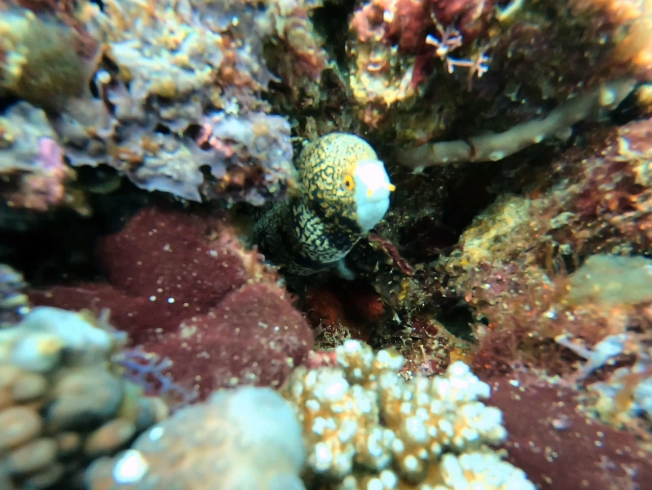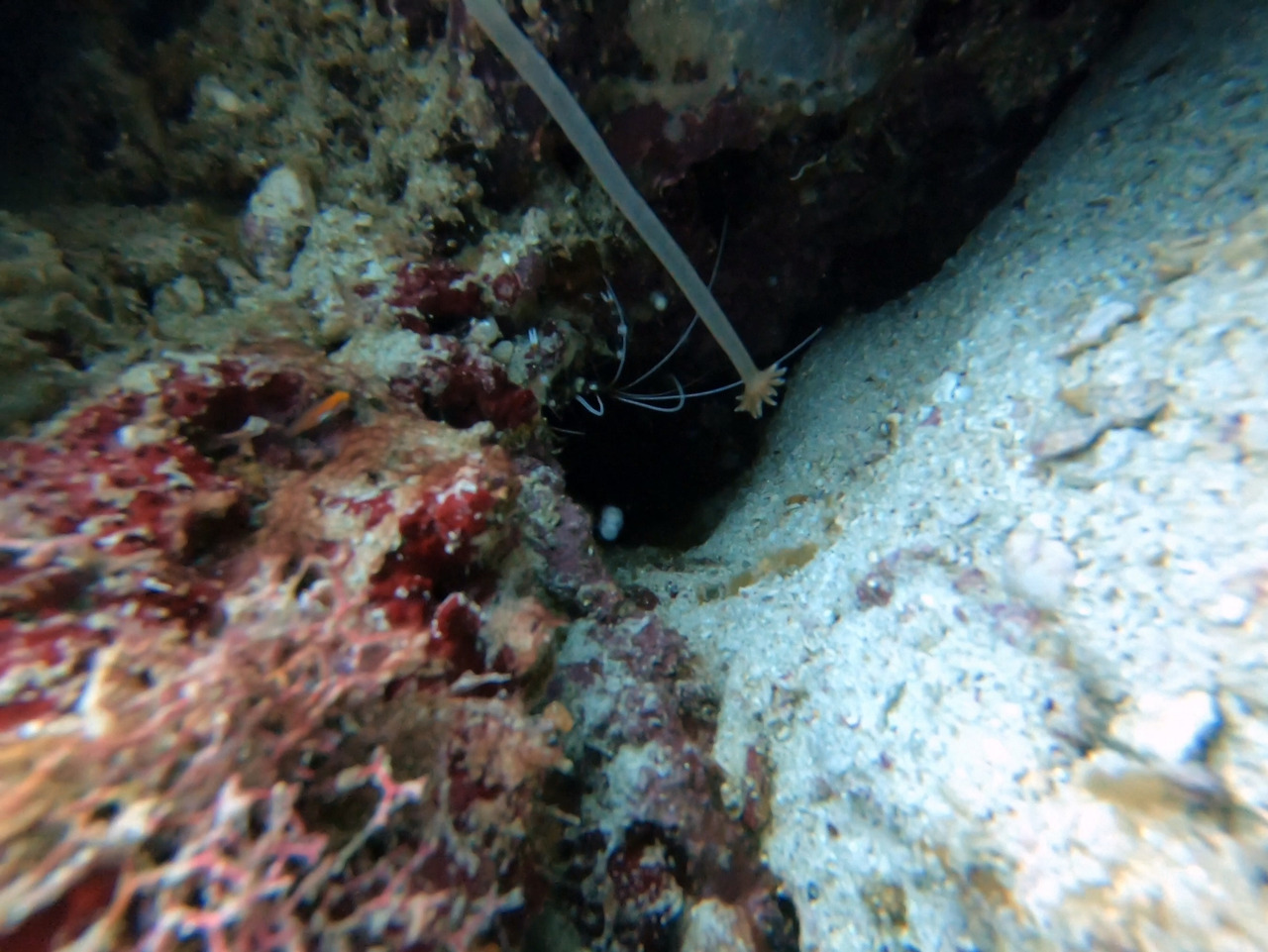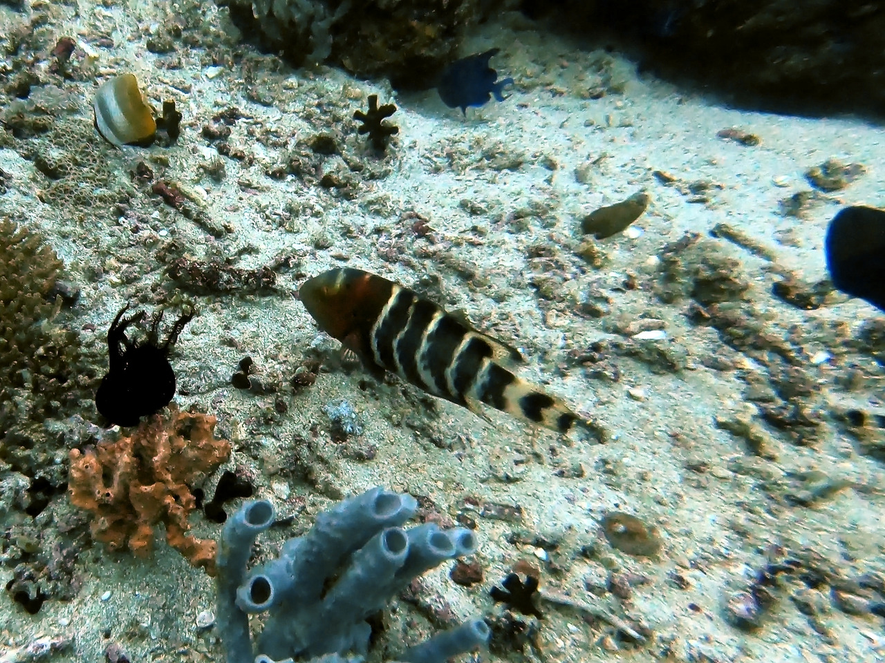 여기도 트리거피쉬들이 잔뜩 모여있다. 돌 틈에 박히듯이 기어 들어가 있다.