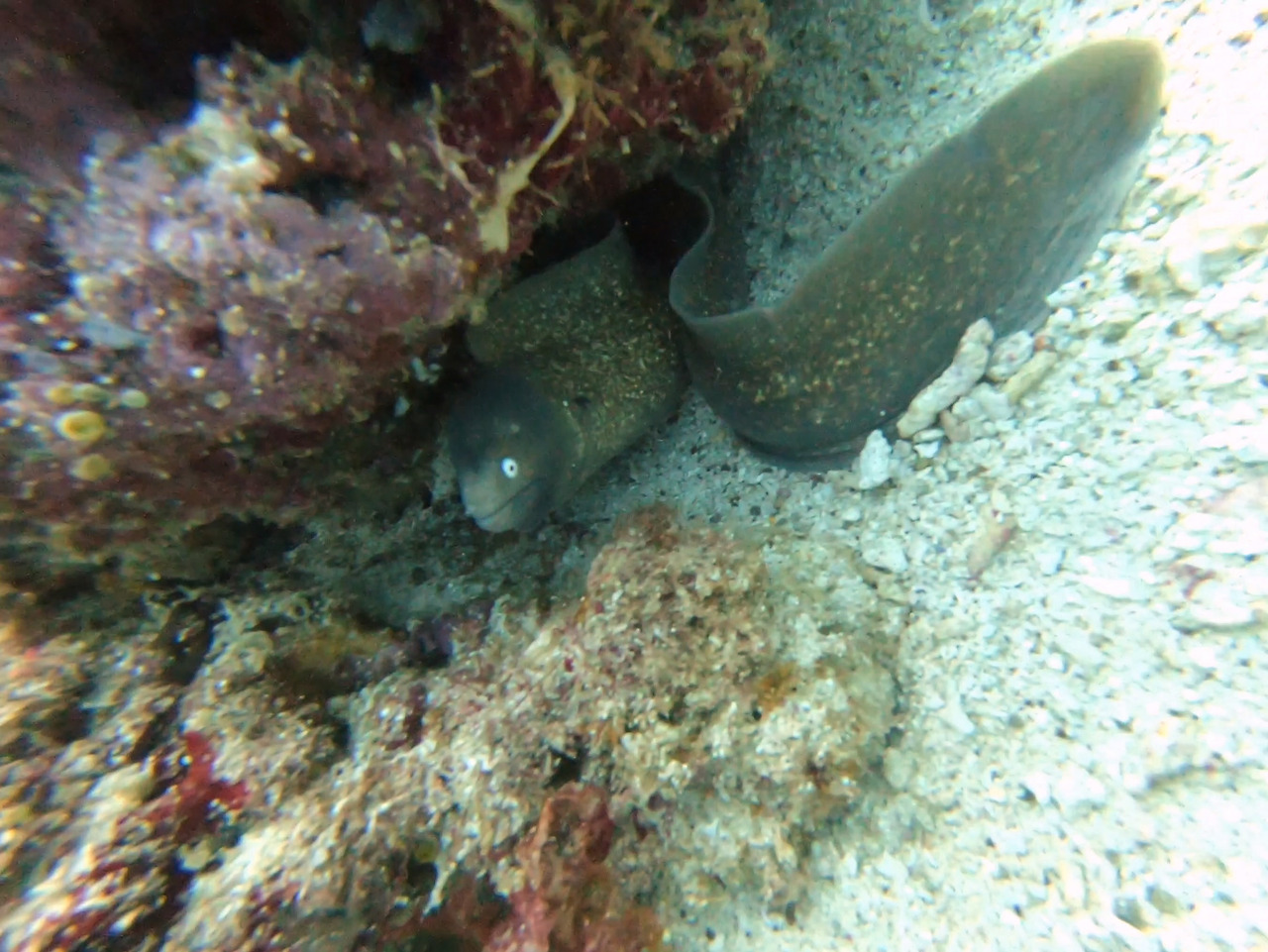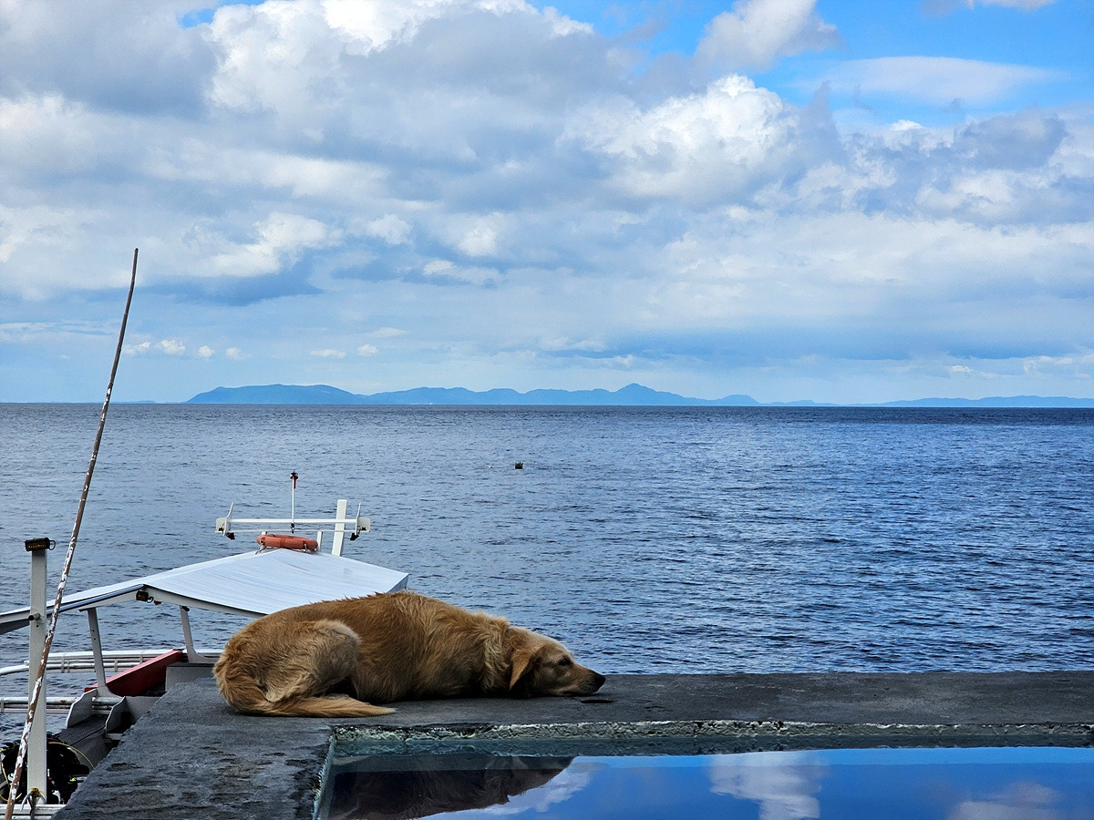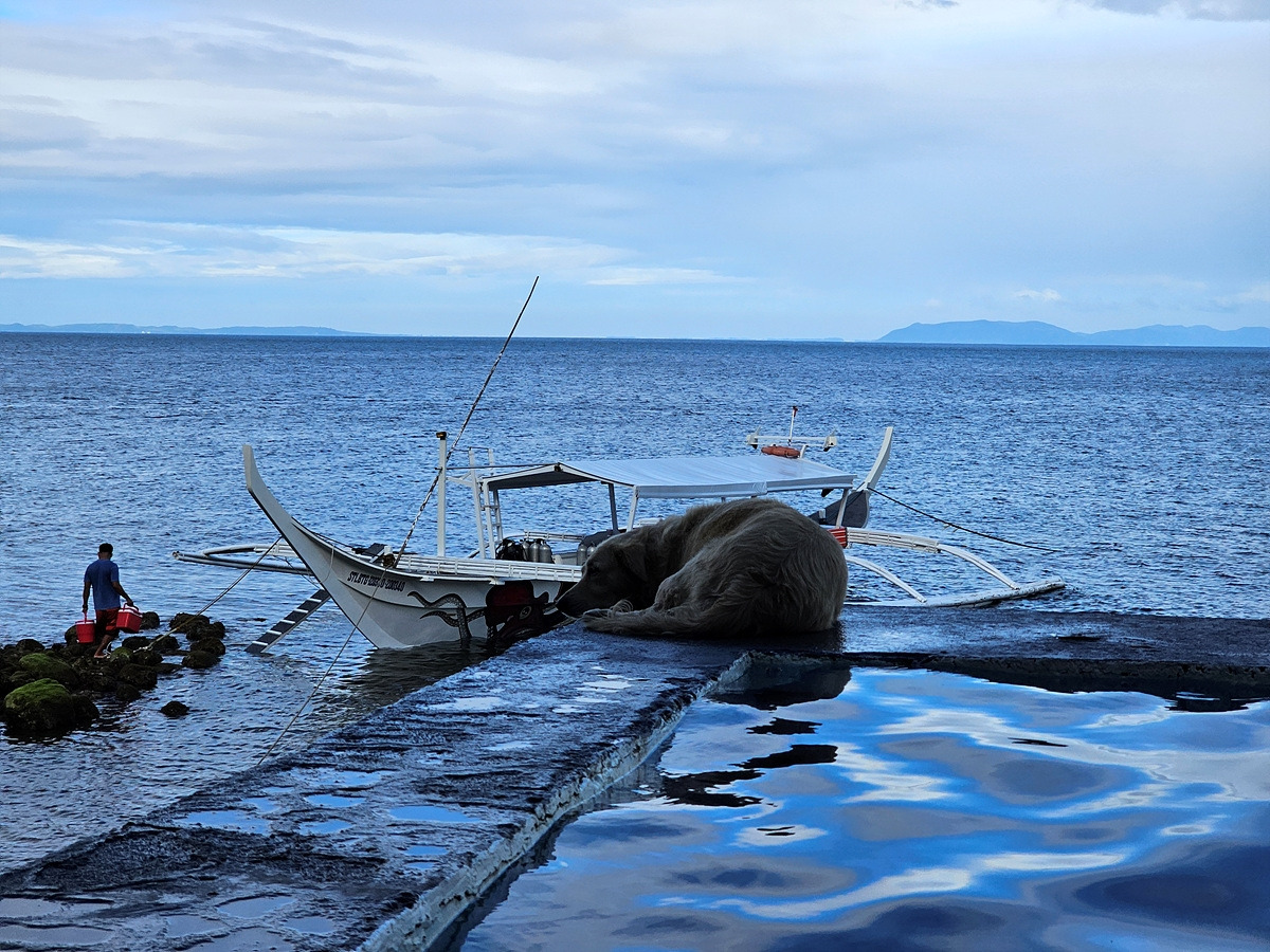 3번의 다이빙을 마치고 돌아왔다. 다이빙 다녀와서도 이 녀석은 여전히 이러고 있다. 사람들이 일부러 걸어 들어가기 귀찮은 구석진 곳이라 편한가 보다.