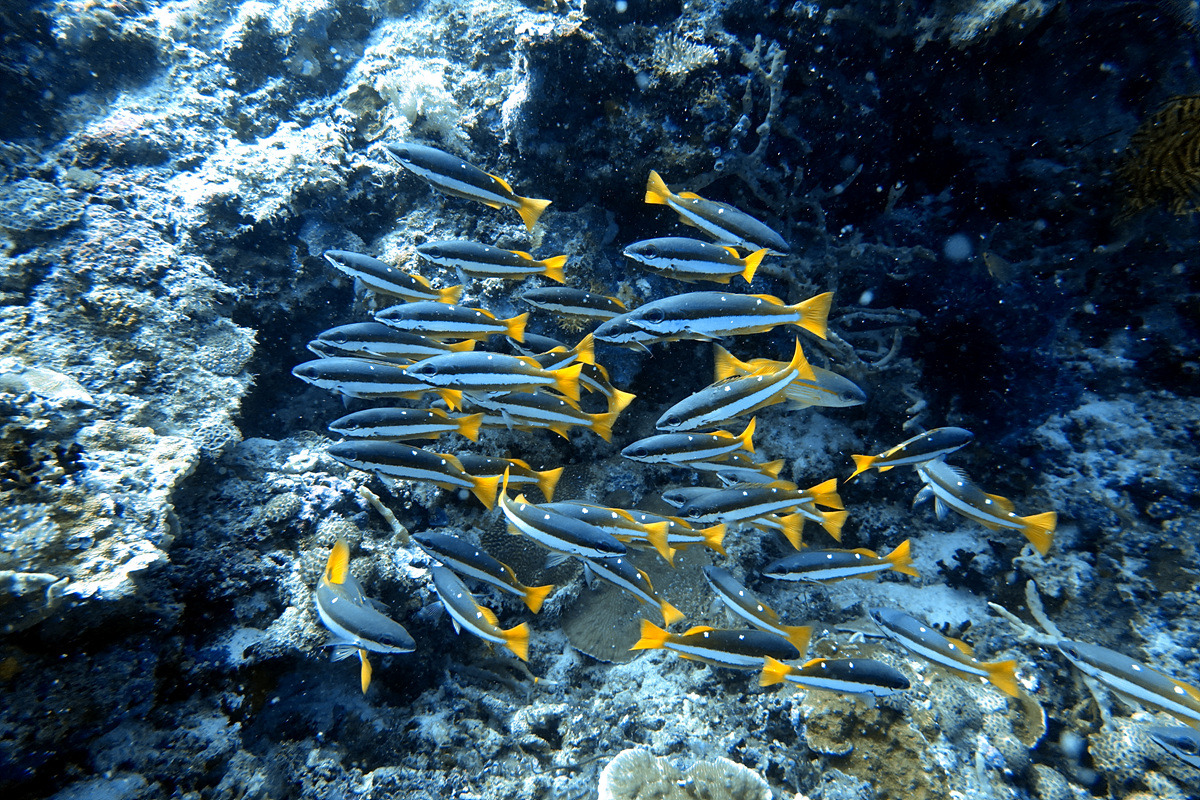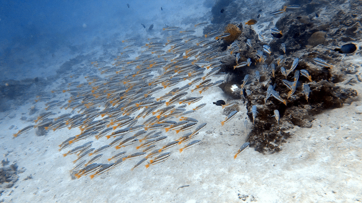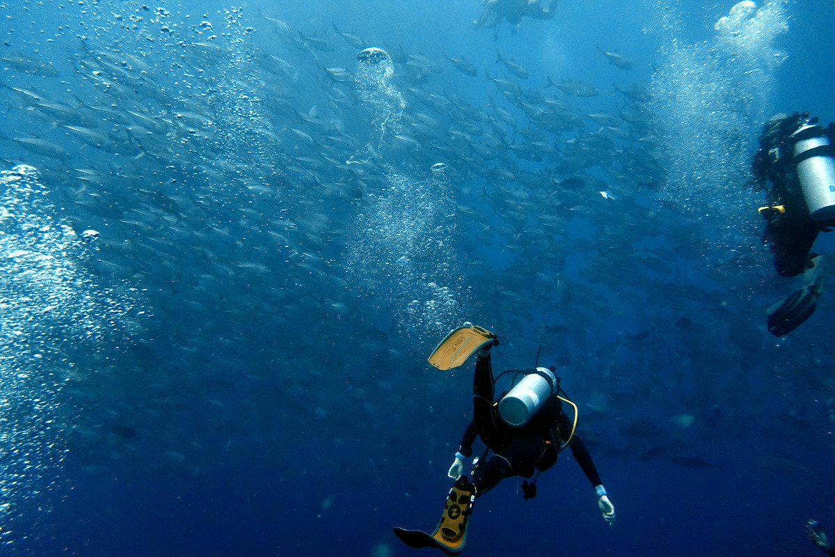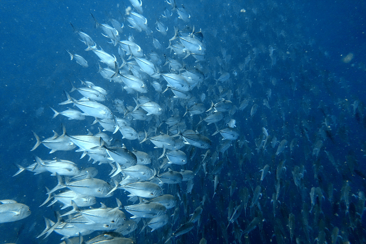보홀에서 다이빙을 하면 한두 번은 보게 되는 잭피시 떼, 조금 깊은 곳에서 만났는데 엄청난 인파에 쫓겨 금방 도망가버린다.