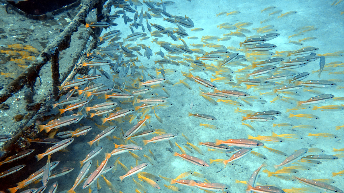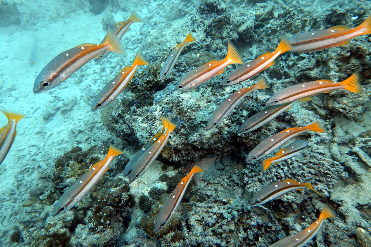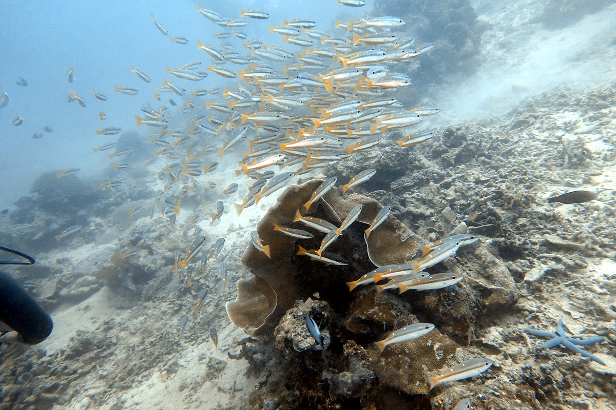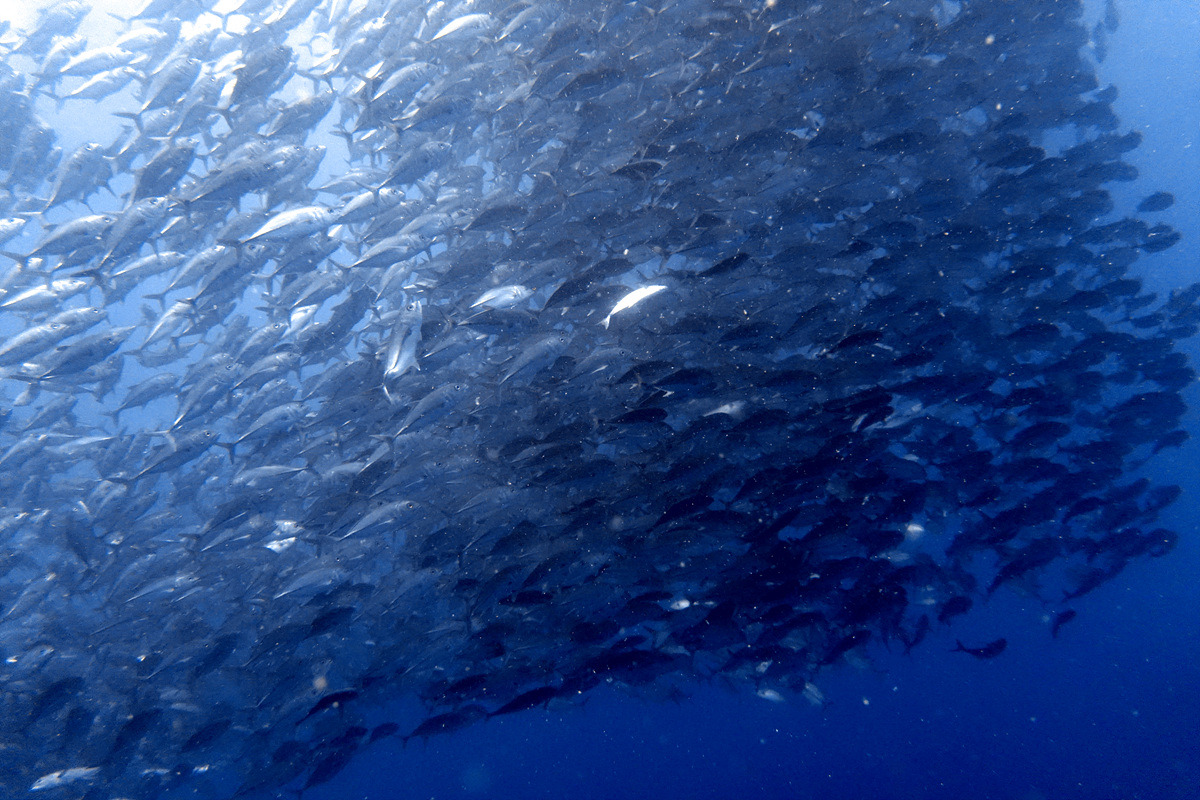 보홀에서 다이빙을 하면 한두 번은 보게 되는 잭피시 떼, 조금 깊은 곳에서 만났는데 엄청난 인파에 쫓겨 금방 도망가버린다.