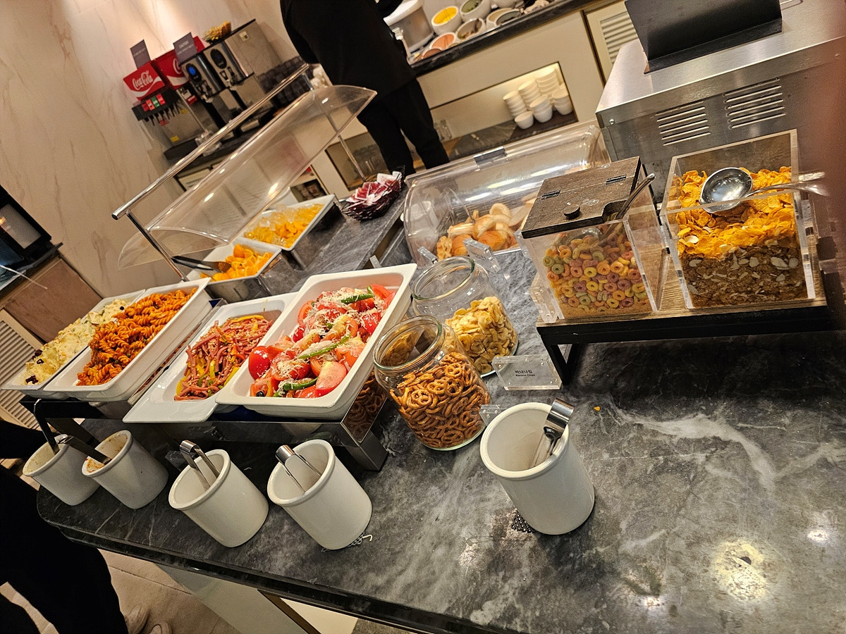 라운지도 항공편이 지연된 사람들로 북새통이다. 거의 1시간을 기다려서 들어가 자리를 잡고 앉아서 저녁을 먹으면서 쉰다.