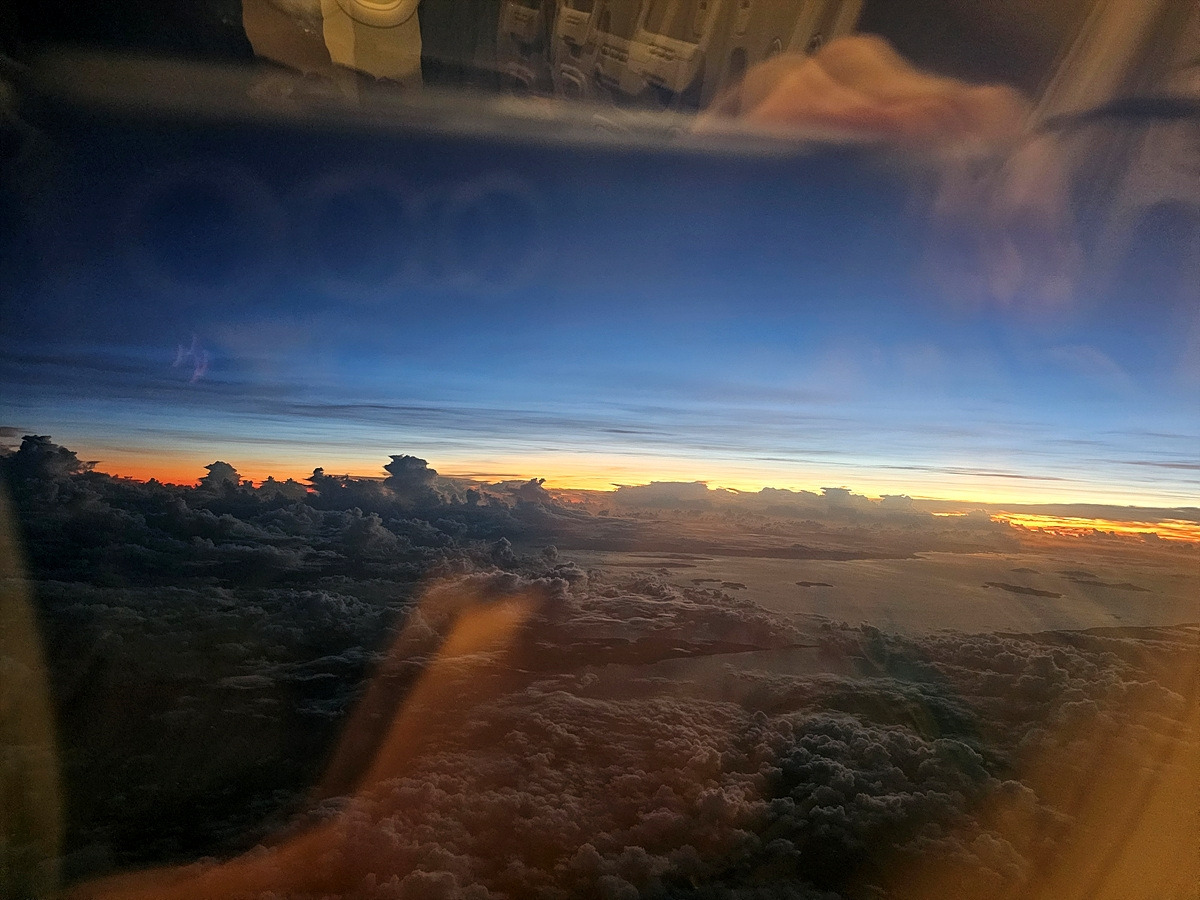 다행히 늦지 않게 이륙했다. 눈을 떠보니 해가 뜨려고 한다.