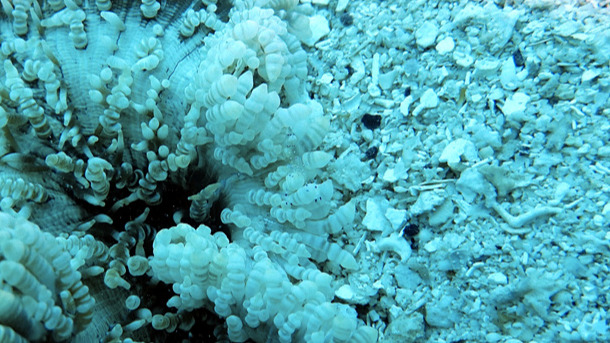 아네모네에 투명한 새우가 보인다.