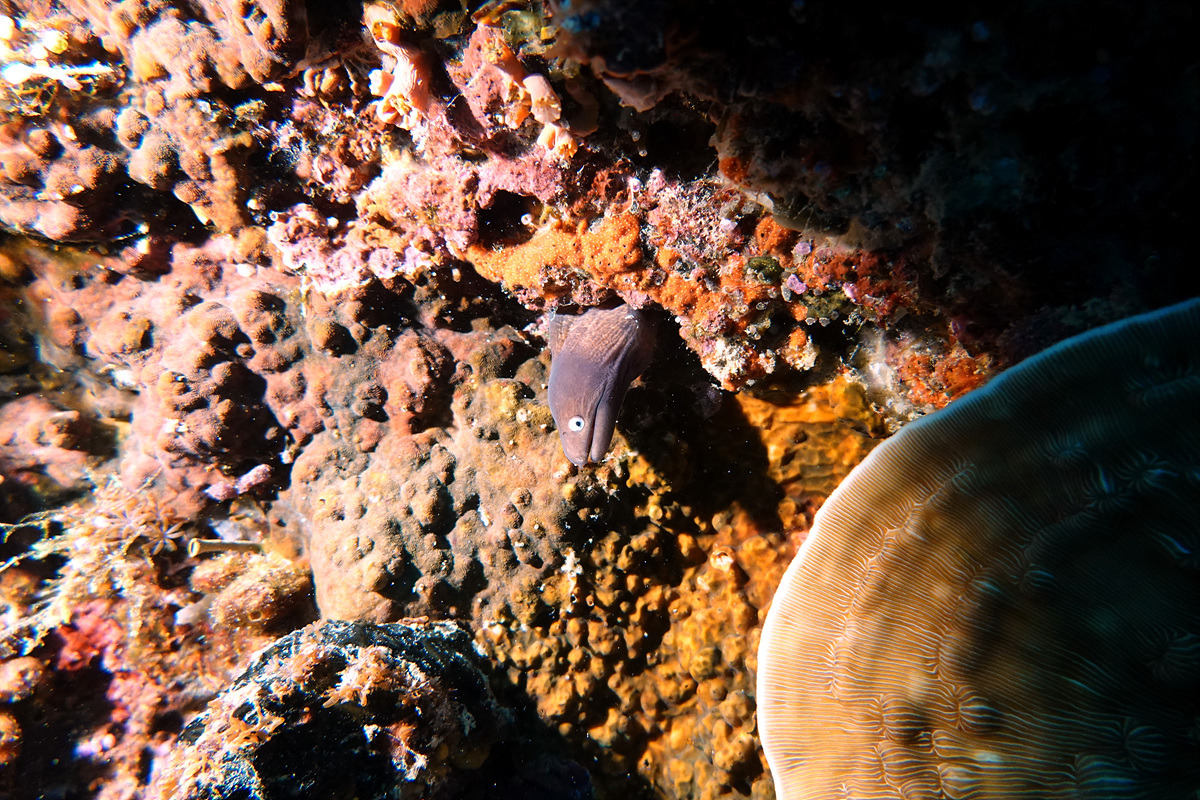 발리카삭과 알로나 비치 앞바다, 역시 보홀이다. 다이빙은 만족스러운데 둘이 다니다가 혼자 다니면 영 심심하다. 첫 다이빙에서 3개의 수중 라이트 중에 하나가 불량이라 침수되었다. 구입한 지 얼마 안 되는 것이라 환불 요청은 해두었는데 문제는 촬영에 광량이 부족해지고 조명이 짝짝이가 되어버렸다는 것이다.