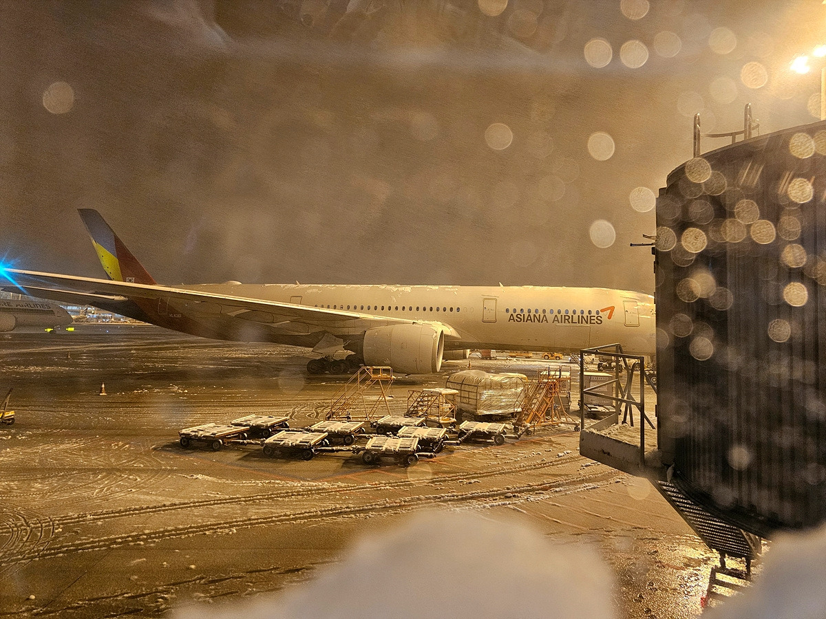 11월 27일, 11월인데 기록적인 폭설이 내렸다. 반차를 내고 회사에서 일찍 출발했는데 공항 가는 길에 갑작스러운 폭설에 차들이 우왕좌왕이다. 눈이 덜 쌓인 1차선에서 한 줄로 느릿느릿 기어가고 여기저기 미끄러져 길가에 처박힌 차들이 널려있다. 눈길 주행도 어느 정도 가능한 올웨더 타이어를 쓰고 있으니 이 북새통에 혼자만 새로 길을 내면서 열심히 달려 일찌감치 도착한다. 체크인을 하는데 카운터 직원이 결항되진 않을 것 같은데 출발이 엄청 지연될 것이라고 말해주길래 출국 게이트에서 라운지로 간다.