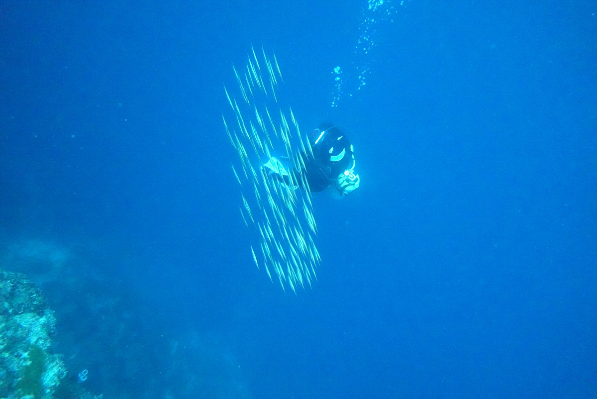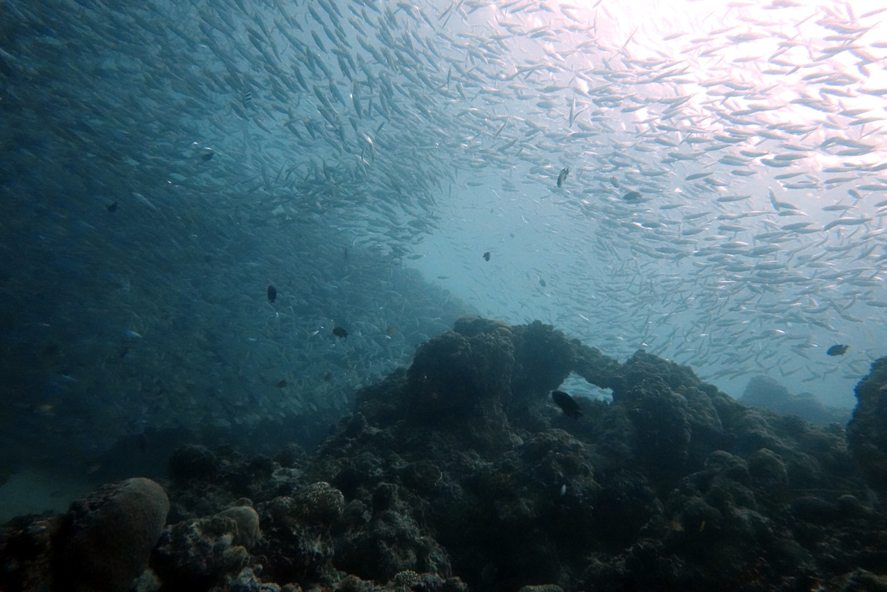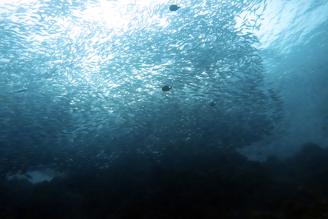 어딜 가도 그렇지만 가이드 없이 가봐야 가이드의 소중함을 알 수 있다. 아직 이 바다에 대한 지식도 경험도 없으니 가이드가 없으면 아무래도 뭔가를 찾아다니기는 힘들다. 그래도 모알보알은 들어가자마자 바로 앞바다에 정어리떼가 잔뜩 있다. 무언가를 좀 찾으려고 시도했다가 흔한 생물들만 보여 그냥 정어리떼에 집중하기로 한다.