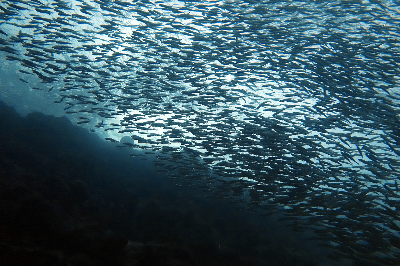 리조트 앞에서부터 남쪽으로 계속 정어리떼가 이어진다. 정어리가 어찌나 많은지 많이 모인 곳은 햇빛이 차단돼서 깜깜하다. 시야만 조금 더 좋았으면 엄청난 장관이었을 것이다.