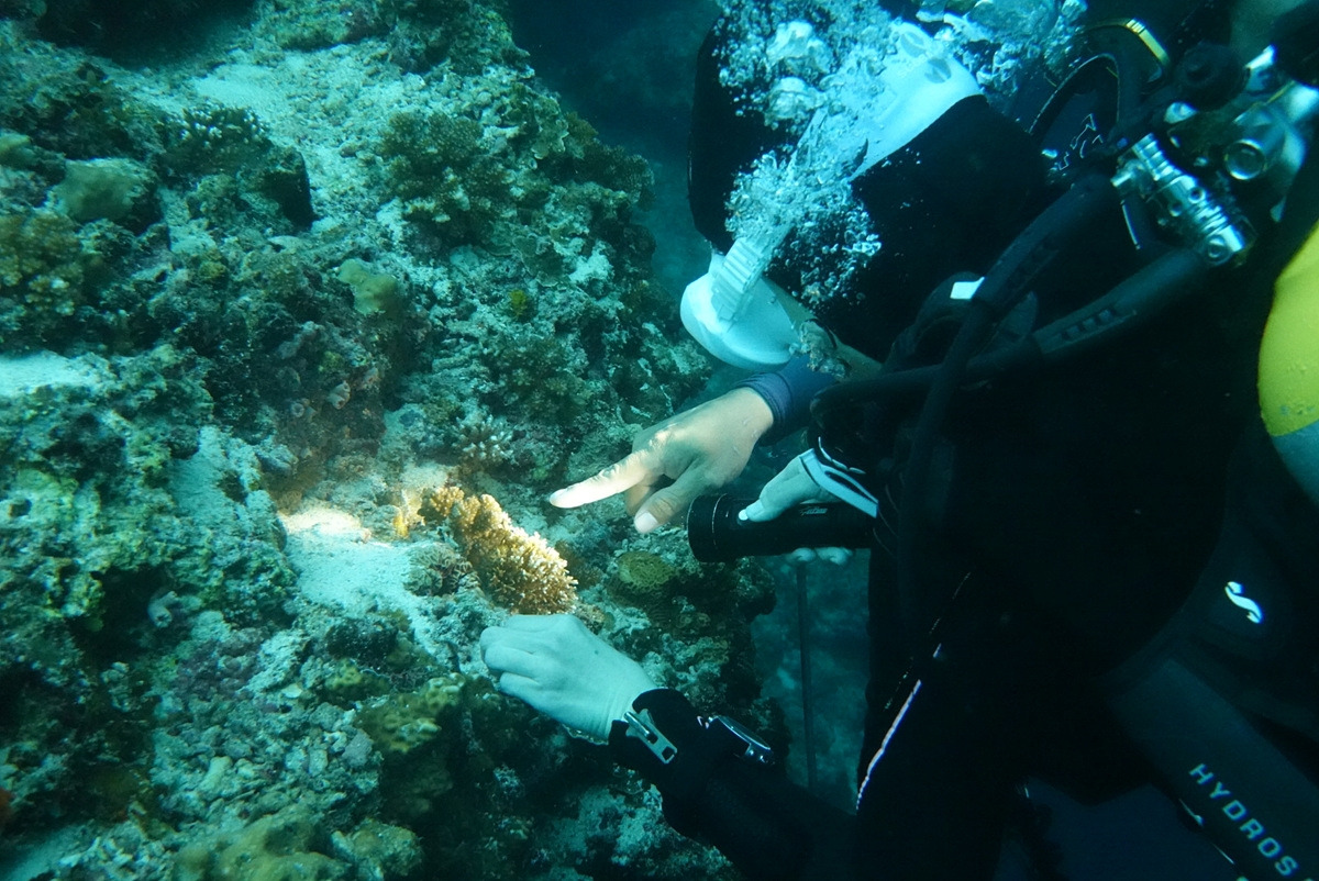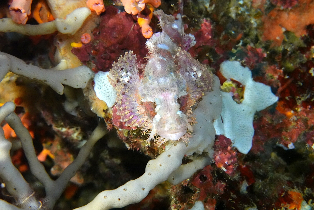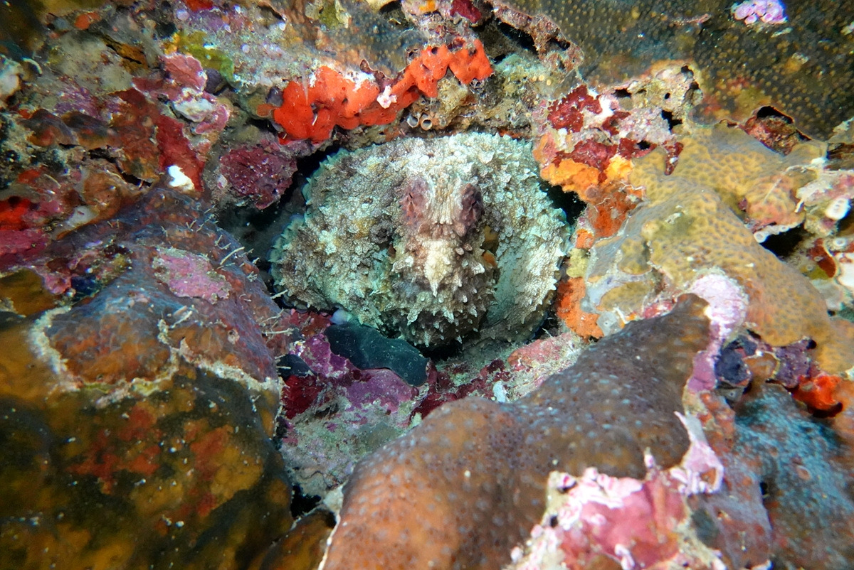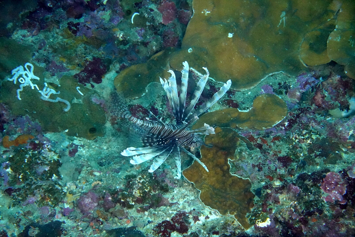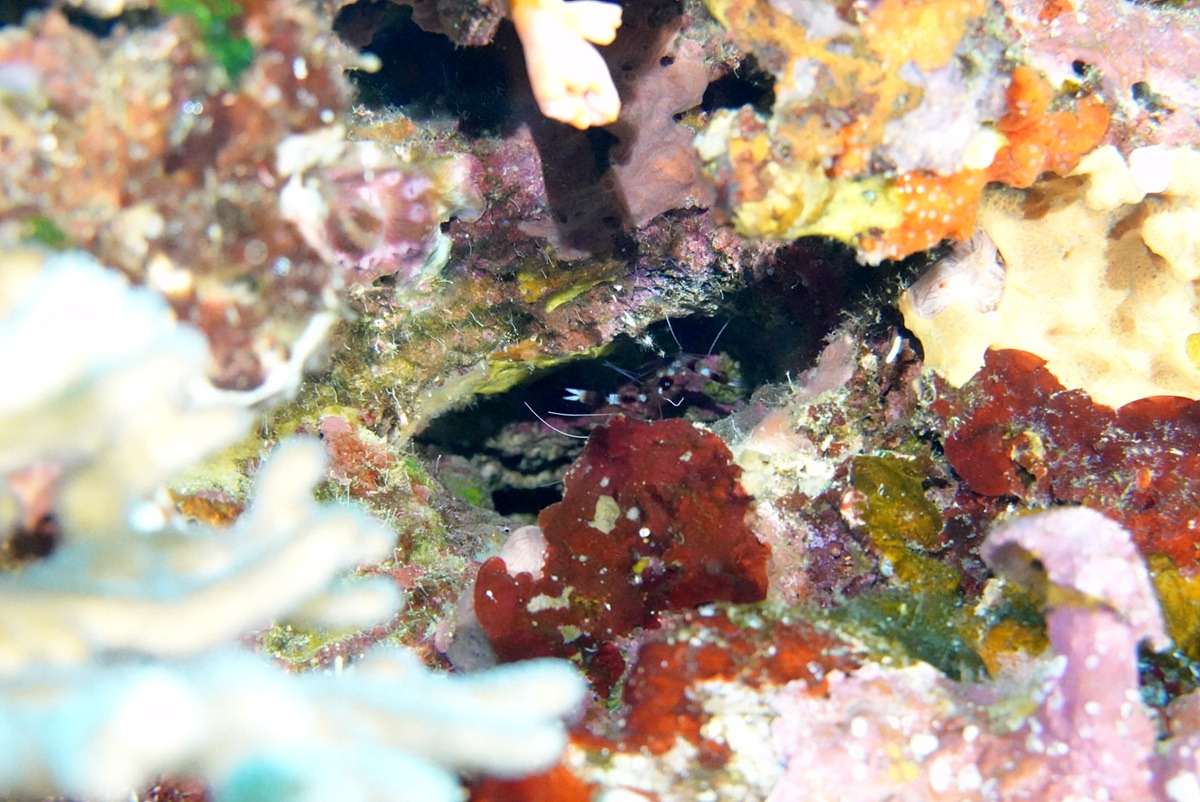 구멍 속에 밴디드 코랄 쉬림프. 몇 년 전엔 보기 힘들었던 것 같은데 요즘엔 다이빙할 때마다 자주 보는 것 같다.