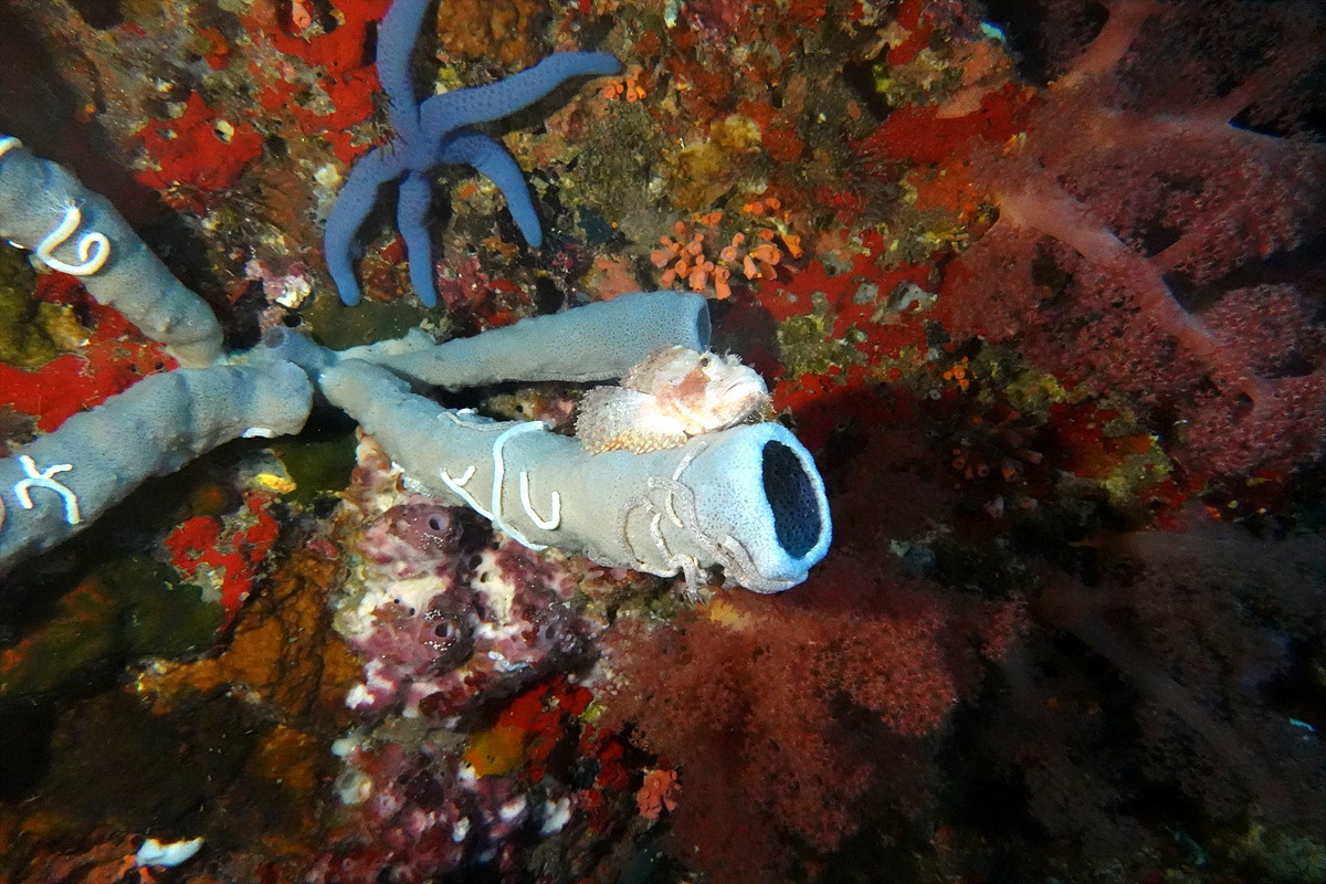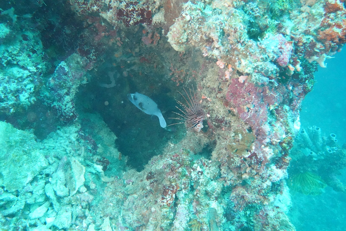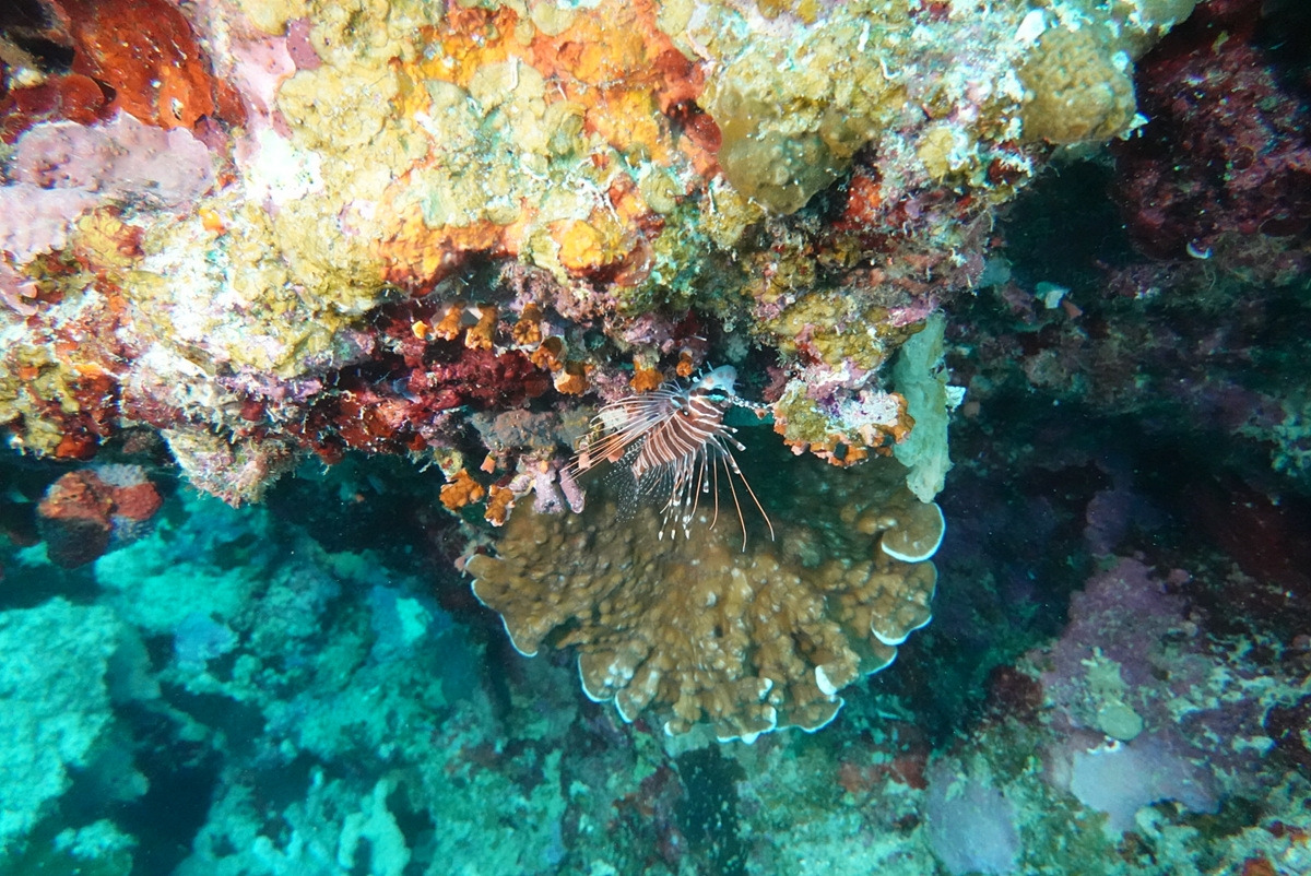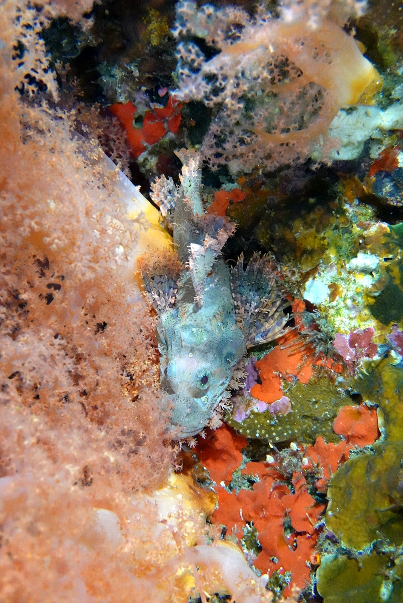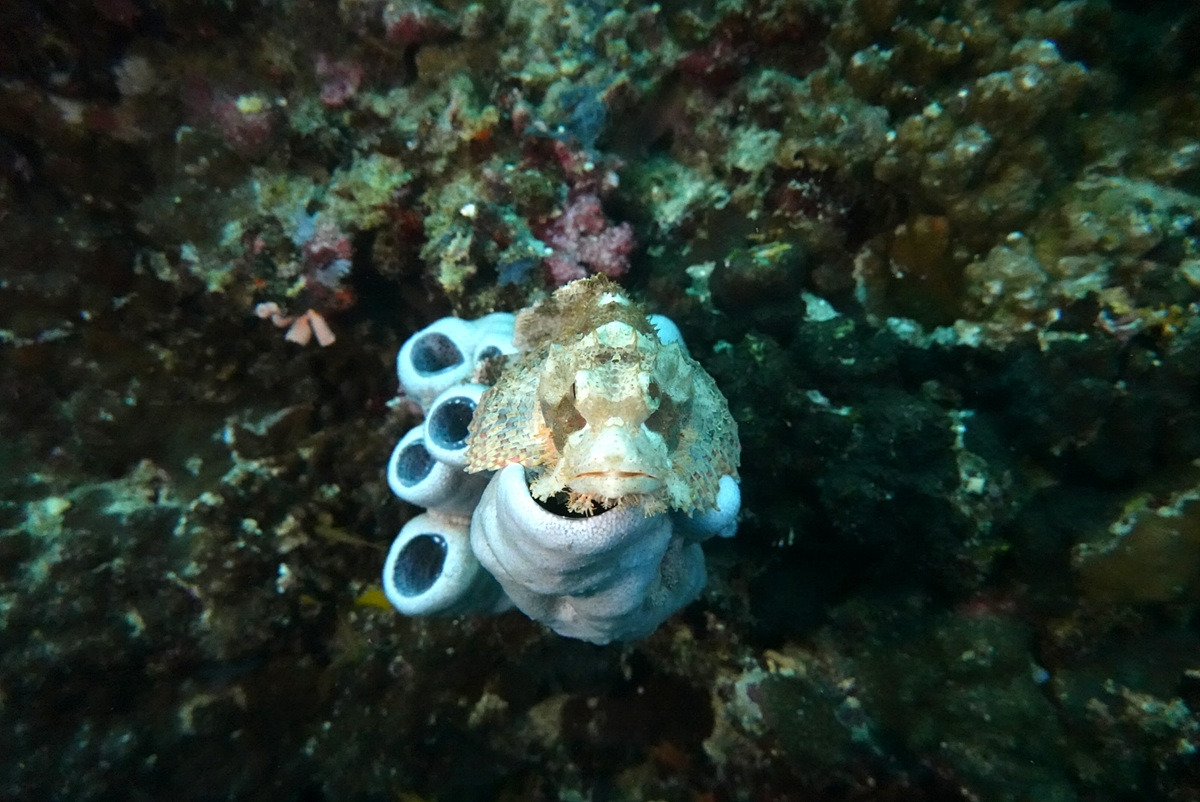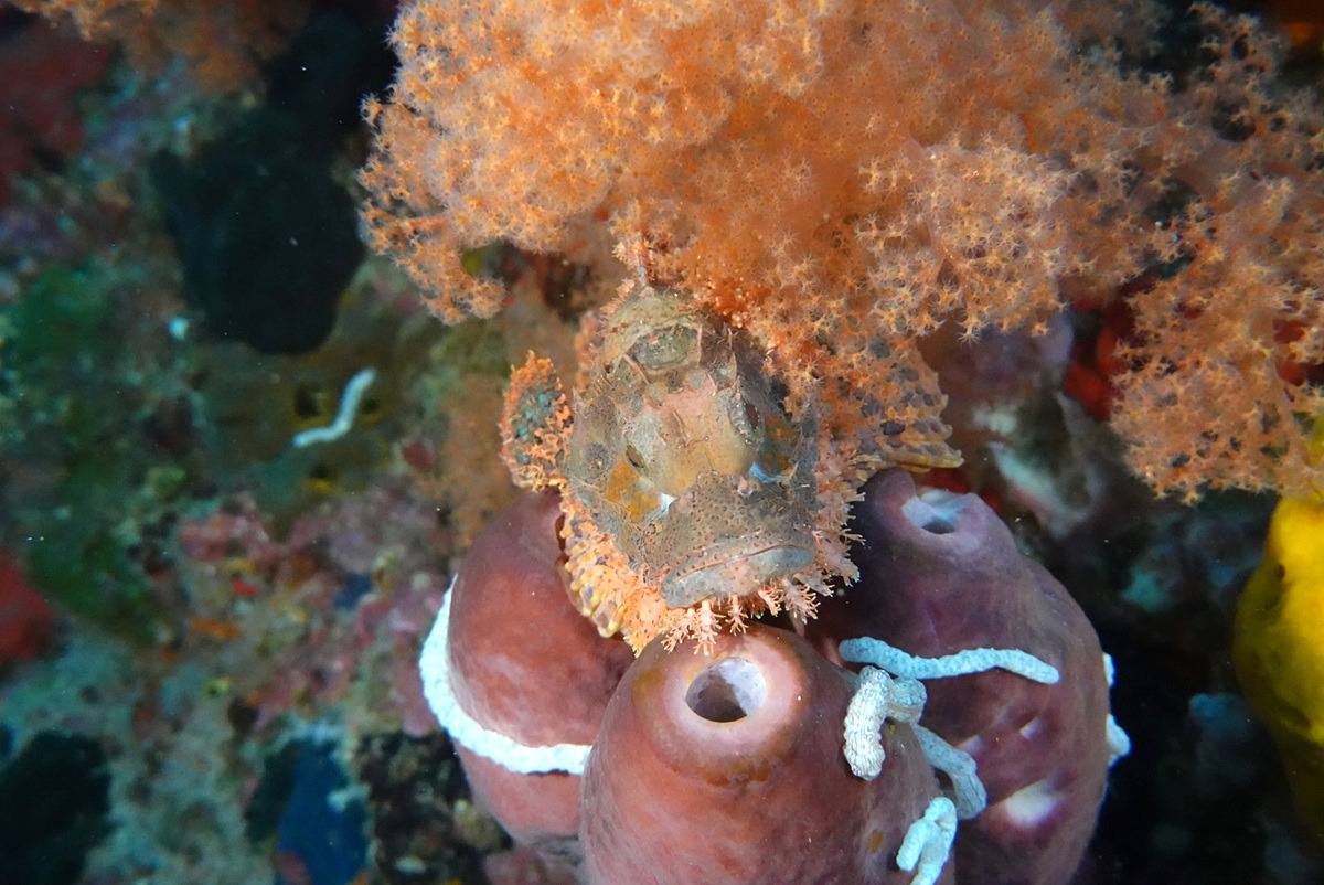 원래 스콜피온 피쉬들은 눈에 잘 안 띄는 애매한 곳에 숨어있는데 모알보알의 녀석들은 튀는 걸 좋아한다.
