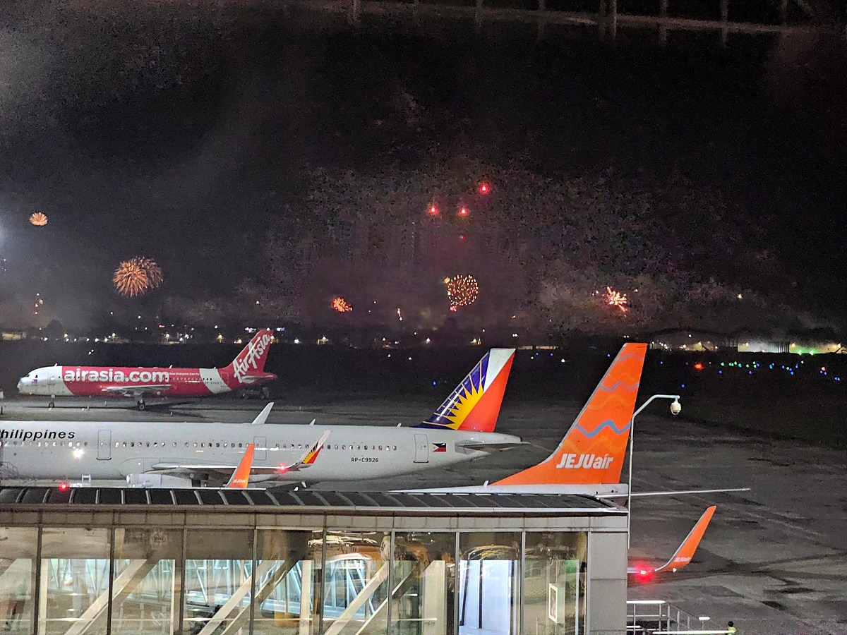 세부 막탄 공항에 도착했다. 출국 수속을 하고 자주 가는 버거킹에 가서 저녁을 간단히 먹는다. 게이트에 가서 기다리는데 밤 12시가 되면서 요란한 소리가 들린다. 세부 막탄 공항은 주변에 리조트로 둘러싸여 있는데 이 리조트들이 한꺼번에 폭죽을 터트린다. 생각지도 않았던 풍경이다.