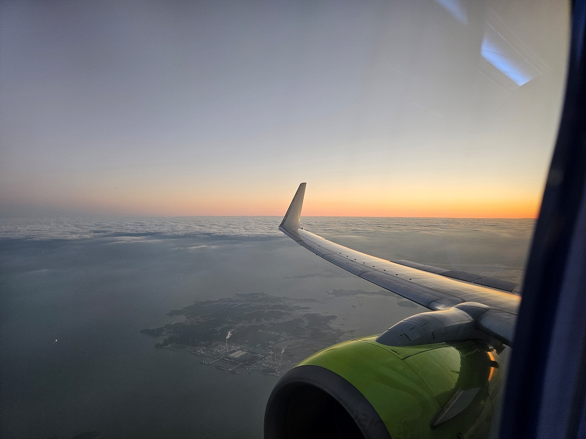 비행기에 타고 한숨 자고 일어나니 창 밖에 영흥도가 보인다. 인천공항에 거의 다 온 것이다. 2025년 1월 1일 새해의 첫 일출을 비행기 안에서 맞이한다.