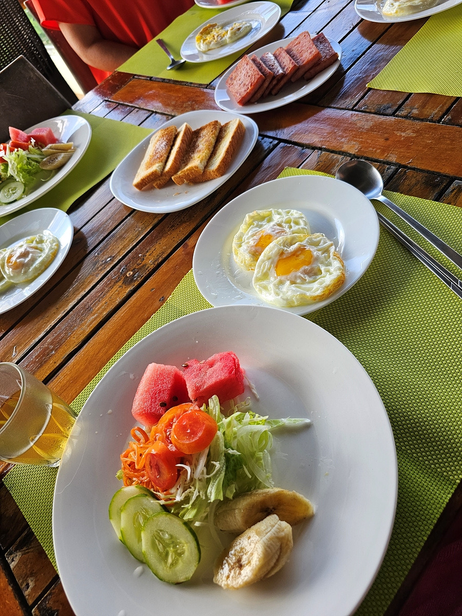 토스트와 샐러드 위주의 아침식사가 나왔다. 나는 식도염이 좀 잘 생기는 편이라 평소에는 아침식사를 잘하지 않는데 5일의 다이빙 기간 동안 속이 편했다.