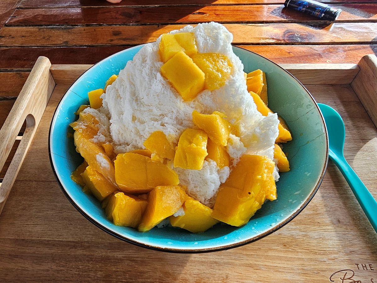 점심에는 파스타와 필리핀식 통닭이 나왔다. 후식은 망고빙수.