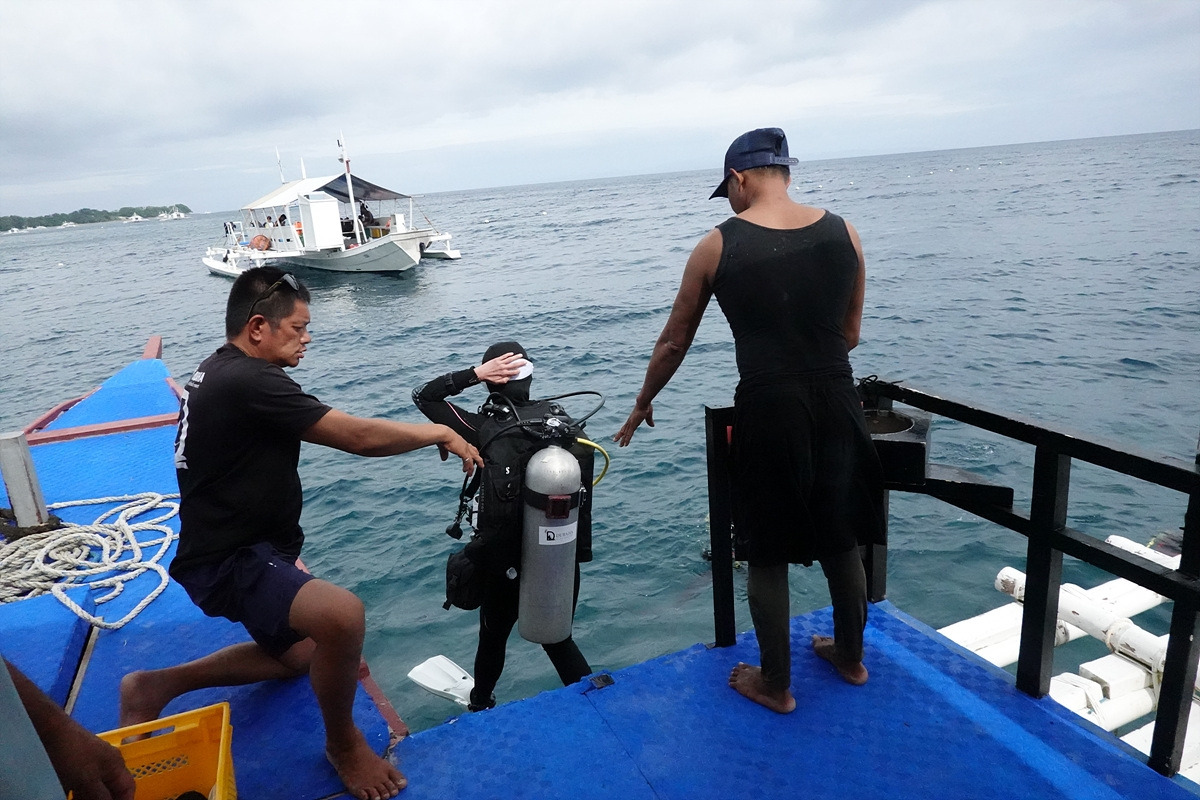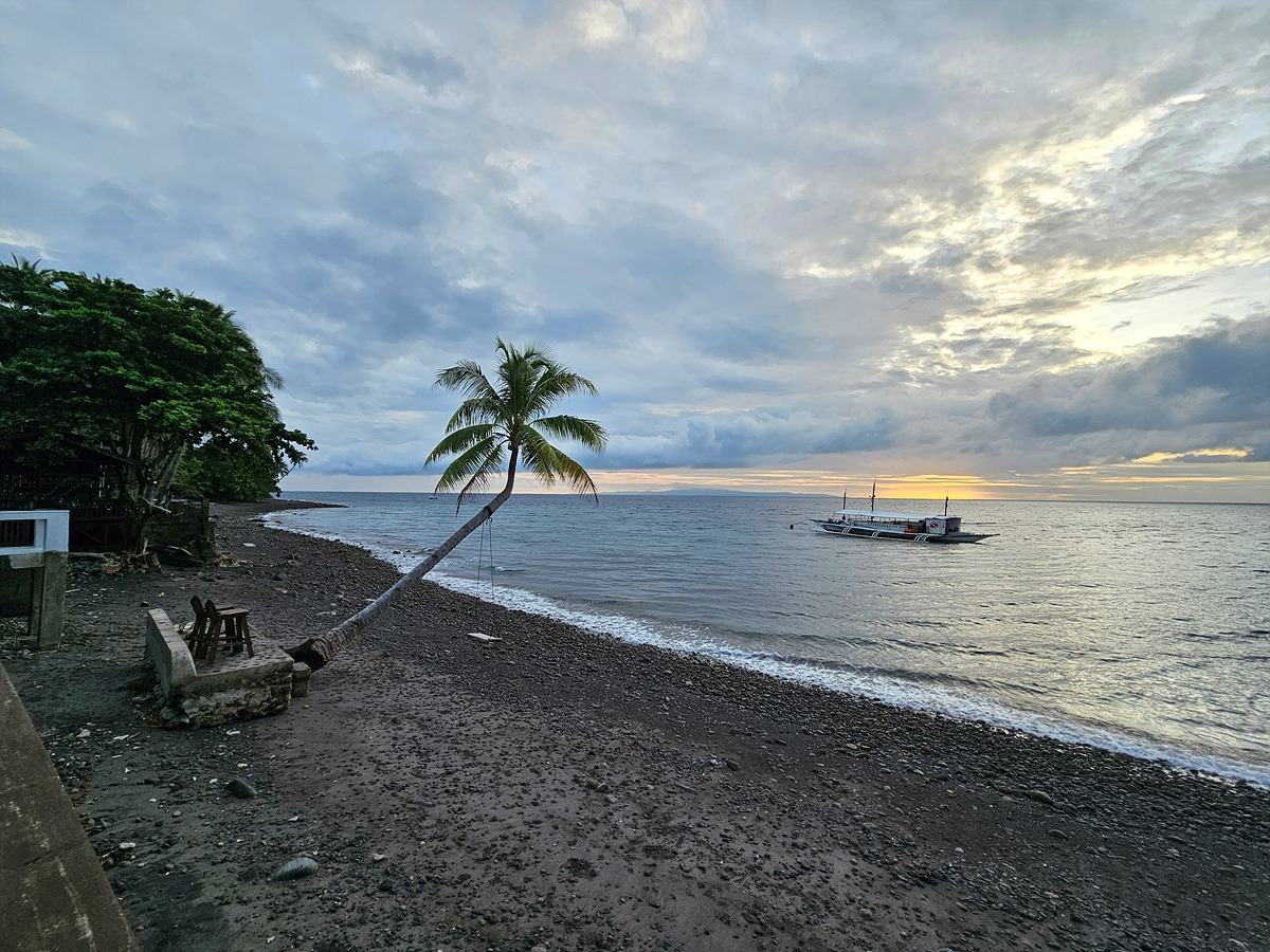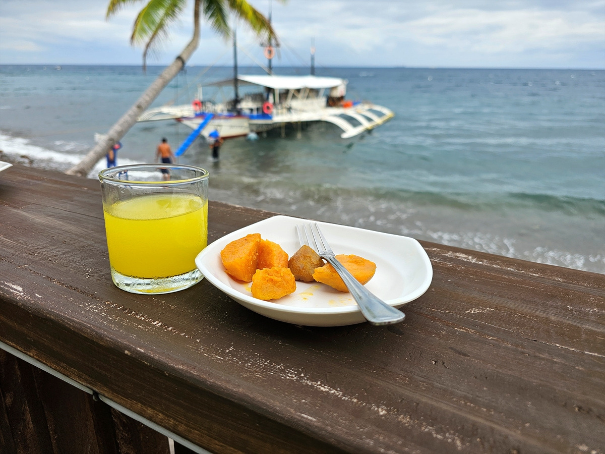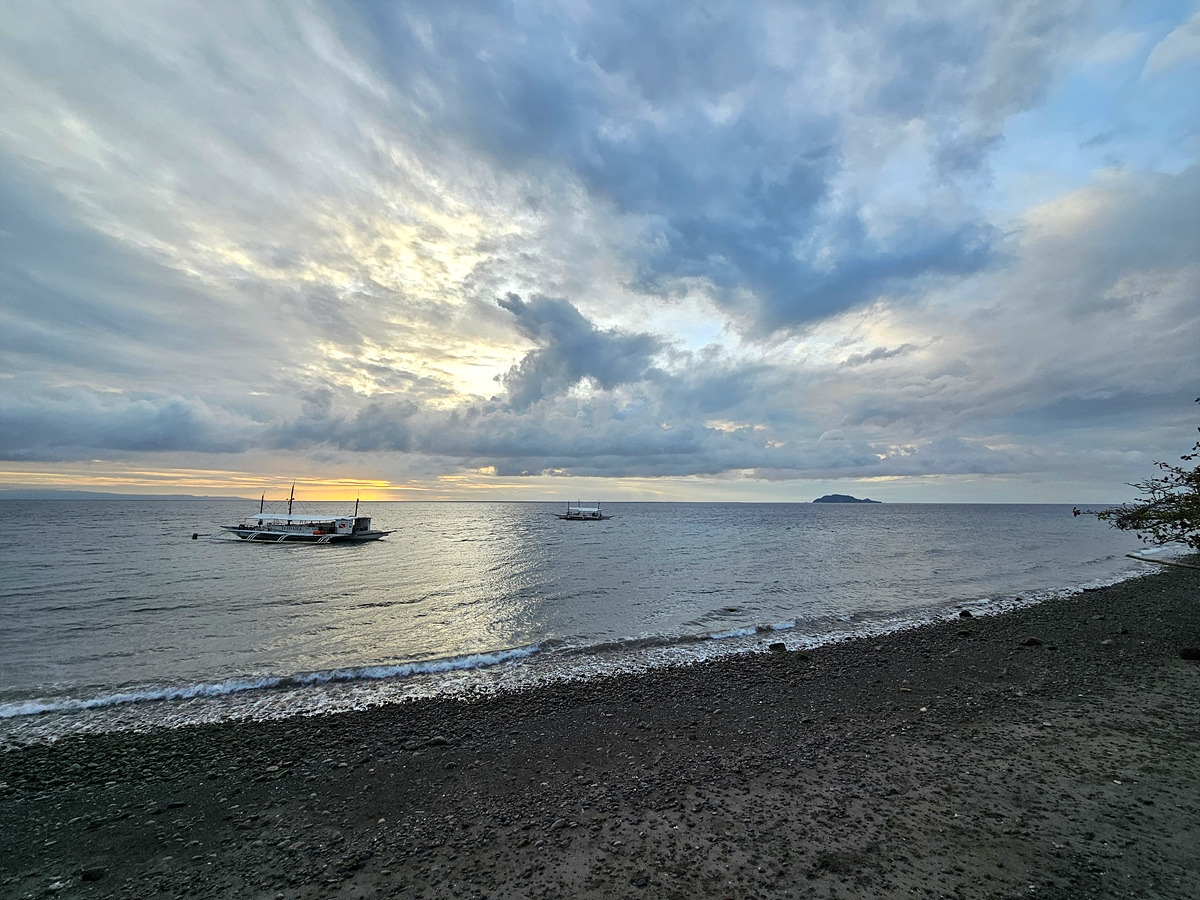 밤비행기에서 자야 하는 필리핀의 다른 다이빙 지역과 달리 정상적으로 자야 할 시간에 자고 일어나니 컨디션이 좋다. 리조트는 저기 보이는 아포섬에 다이빙하러 가기 좋은 위치다. 아포섬뿐만 아니라 이 앞바다도 충분히 좋다고 한다.