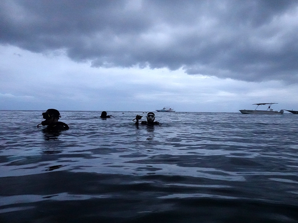 야간 다이빙을 끝내고 편안하게 저녁을 먹는다.