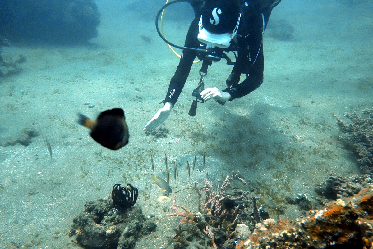 북쪽으로 몇 블록 이동해서 해변에 도착했다. 해변에서 바로 장비하고 비치다이빙으로 입수한다.