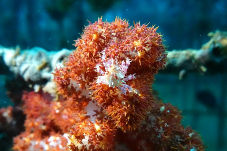 바다 나리에 붙어사는 바다나리 새우는 바다나리랑 너무 똑같아서 구별이 힘든데 가이드가 이렇게 쫓아내 줘서 그 전체 생김새를 알기가 쉬웠다.