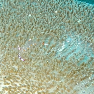 지니님은 투명한 새우가 하늘거리는 걸 좋아한다. 말미잘에 투명한 새우들이 돌아다니는 걸 발견한다.