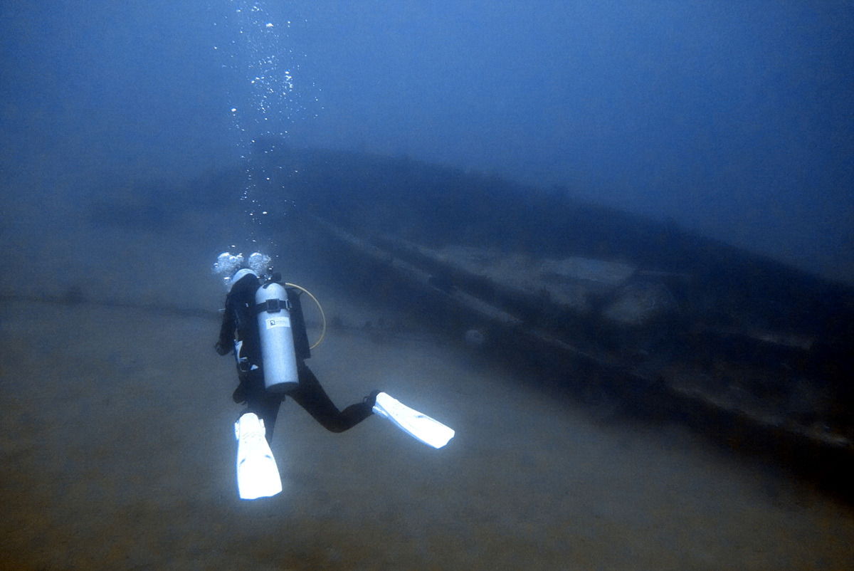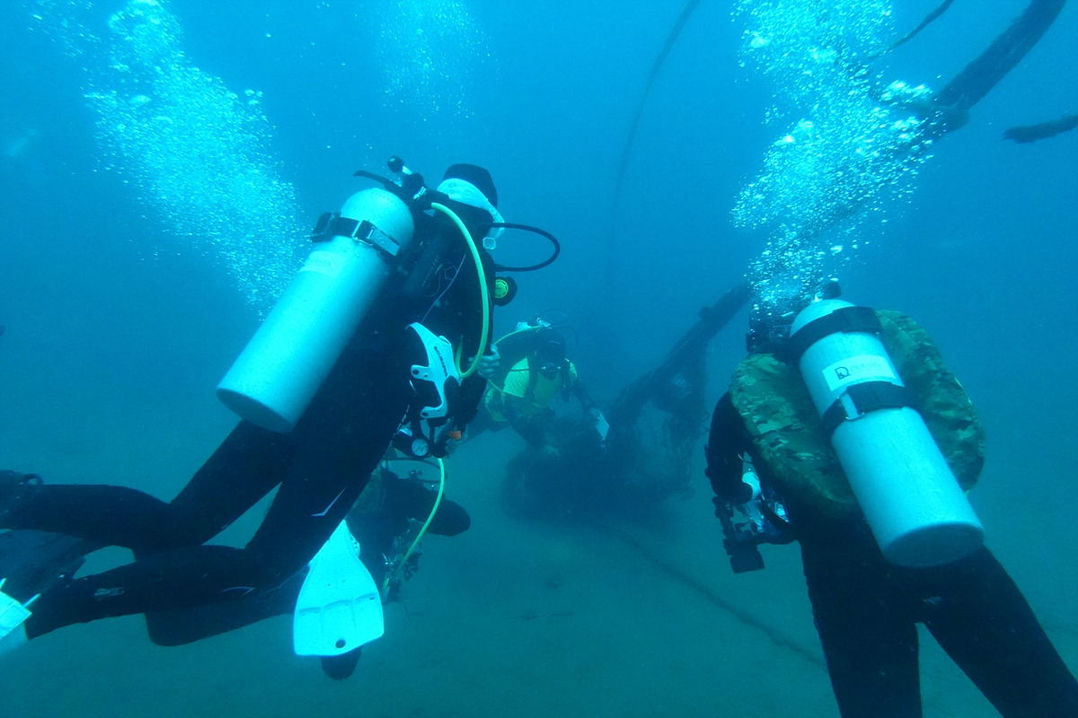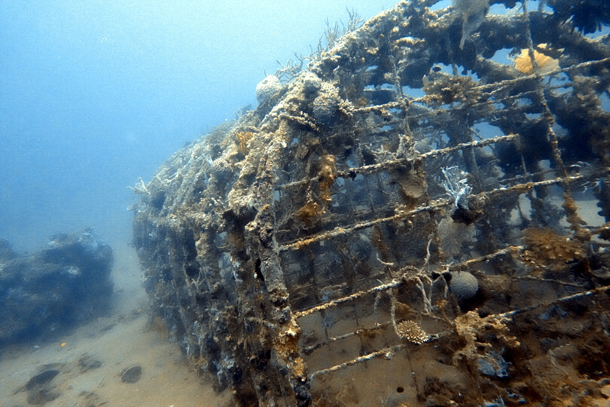 브리핑 대로 난파선을 지나면 비닐하우스 같은 수중 암초가 있다.