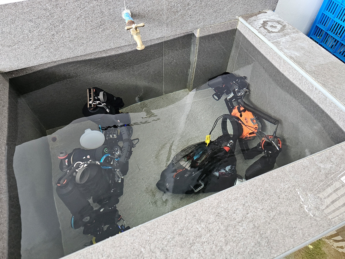 두마게티가 수중 사진 찍기 좋은 곳이라 나 말고도 수중 카메라를 가져온 사람들이 여럿 있다. 라이트 하나가 맛이 가서 못쓰는 내 카메라가 제일 조촐하다.