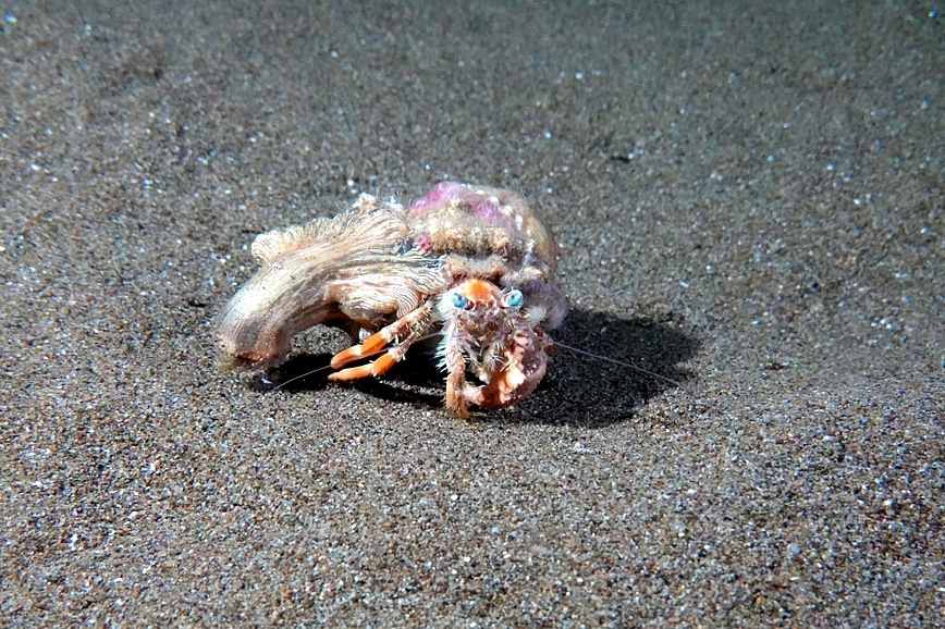 말미잘을 달아서 기괴하게 변한 집을 지고 다니는 소라게