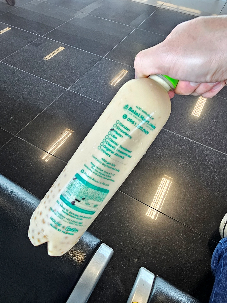 혹시 점심을 제대로 먹고 싶다면 국내선을 타러 가기 전에 공항 3층의 아케이드에 가면 식당이 다양하게 있다. 게이트 안쪽보다 종류가 훨씬 다양하니 여기서 식사를 하고 게이트로 들어가는 편이 좋다. 이제 장장 4시간이 넘게 기다려야 한다. 점심에 출발하는 비행기 편은 환승 시간이 1시간 반 정도로 촉박해서 넉넉하게 저녁 비행기로 간다. 국내선 게이트 안에도 먹을 걸 팔긴 하지만 딱히 먹고 싶은 것이 없어서 코코넛밀크에 멜론을 섞어 만든 주스를 하나 사서 가지고 있던 샌드위치로 점심을 때운다.